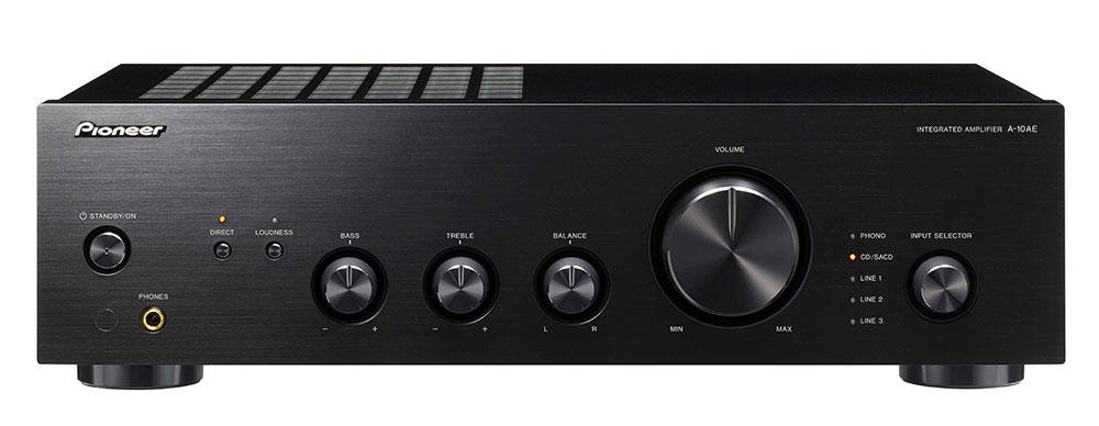 Amplificateur intégré Pioneer A10AE de 50W sur 4 ohms avec un design Direct Energy intégré qui crée un rapport signal/bruit élevé pour un champ sonore immersif et réaliste. Il possède un égaliseur à 3 bandes avec des contrôles sur le panneau avant associé à la fonction Mode Direct qui contourne les contrôles et offre une fonction finement réglée pour améliorer la musicalité. Très polyvalent grâce à 5 entrées analogiques RCA dont une PHONO dédiée au tourne-disque et une sortie de niveau ligne pour connecter un amplificateur externe. Les enroulements de l'amplificateur, du préamplificateur et des contrôles sont chacun séparés à l'intérieur du transformateur de puissance pour éviter les interférences de bruit mutuelles. Les bornes des haut-parleurs utilisent un matériau non magnétique, qui transmet des signaux aux haut-parleurs avec une grande transparence. Disponible en finition noire et argent. Spécifications Techniques Amplificateur intégré à 2 canaux Distorsion Harmonique Totale nominale : (4 ?) : 0,9 % ? (8 ?) : 0,7 % Impédance des haut-parleurs : 4-16 ? Rapport S/N (IHF-A) : 103 dB (LINE In, SP Out), 78 dB (PHONO In, SP Out) Connexions : PHONO (MM), CD/SACD, LINE 1 ? LINE 2, LINE 3 Sortie Audio Analogue : LINE OUT ? Sortie Casque 50 W + 50 W (20 Hz-20 kHz, THD 0,9 %, 4 ohms, 2ch Driven) 30 W + 30 W (20 Hz-20 kHz, THD 0,7 %, 8 ohms, 2ch Driven) Réponse en fréquence : 10 Hz ? 100 kHz +1 dB/-3 dB Niveau d'entrée et impédance phono (MM) : 70 mV (MM 1kHz 0,5 %) Niveau d'entrée et impédance RCA : 200 mV/47 k? SORTIES AUDIO Prise casque Jack de 6,3 mm Impédance casque supportée : 8 ? ? 600 ? (30 Hz ? 100 kHz) Dimensions : 43,5 x 12,9 x 32,3 cm Poids : 6,8 kg