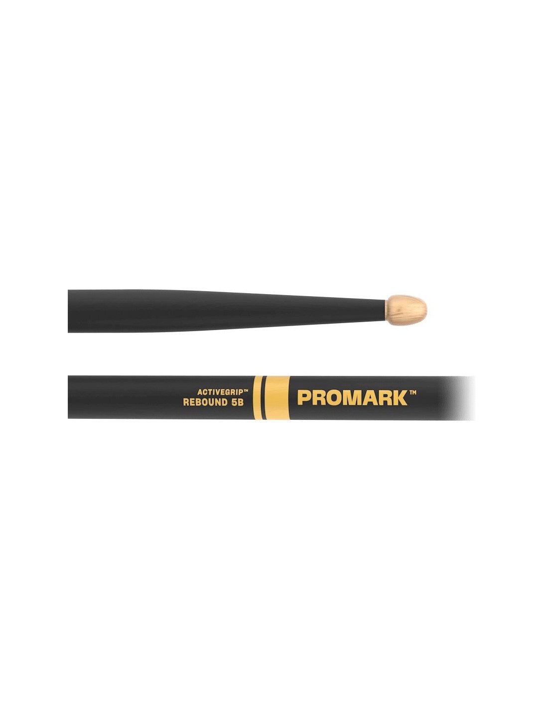 PRO MARK REBOUND 5B ACTIVE GRIP BOIS POINT R5BAG. Baguettes 5b en noyer américain avec pointe en bois en forme de gland, rebond facilité grâce à l'équilibrage des poids, réalisées avec la technologie ActiveGrip brevetée, qui permet une meilleure prise en main des baguettes. Au fur et à mesure que la température corporelle augmente, la finition des baguettes devient collante, garantissant ainsi stabilité et meilleur contrôle.