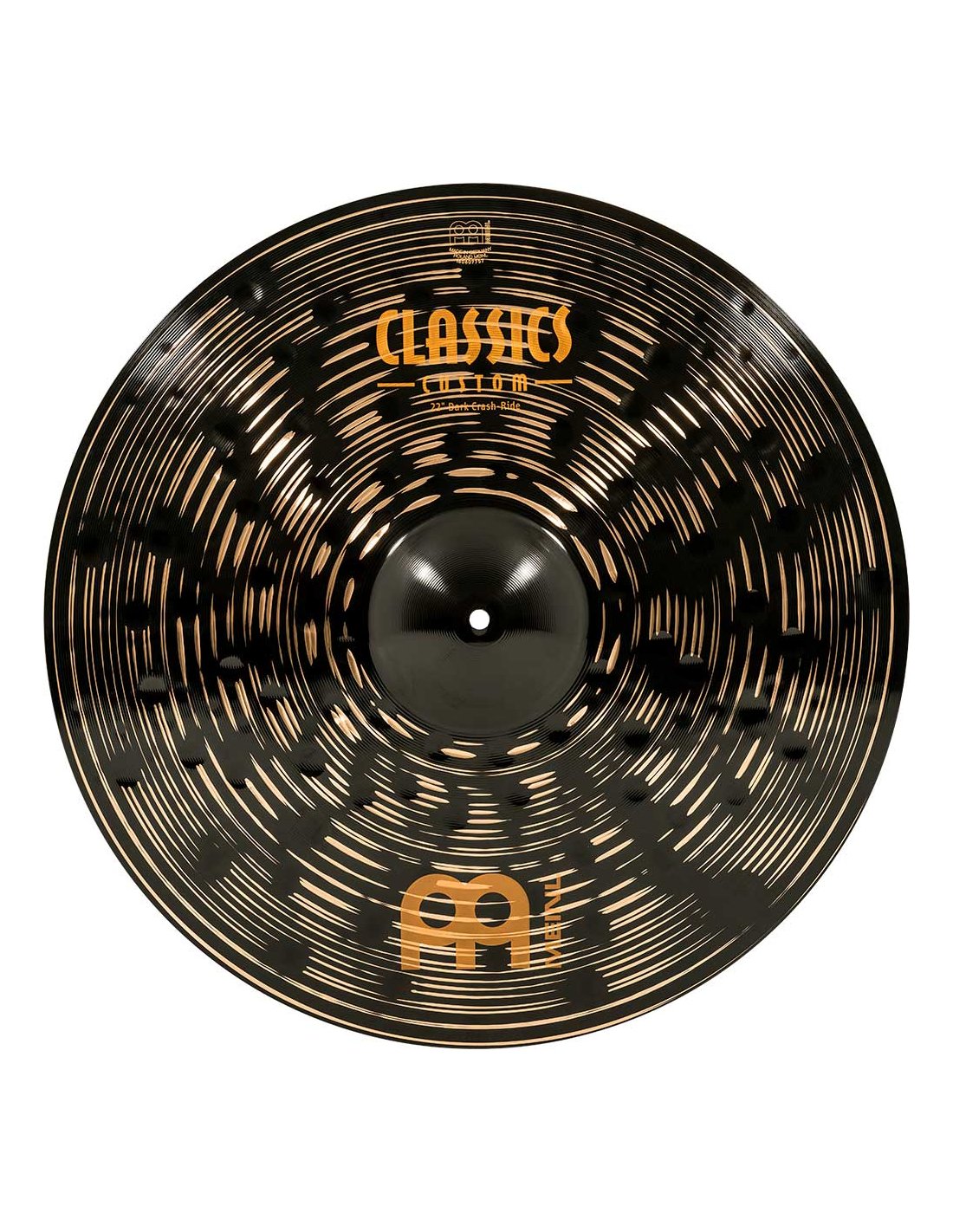 'Crash/Ride 22'', Série Classics Custom Dark. Les cymbales de la série Classics Custom Dark sont fabriquées mécaniquement en Allemagne avec un alliage B10. Le processus implique diverses techniques, tant de pressage que de martelage informatisé. De plus, elles ont une finition noire brillante qui leur donne un aspect spectaculaire et un son particulier.