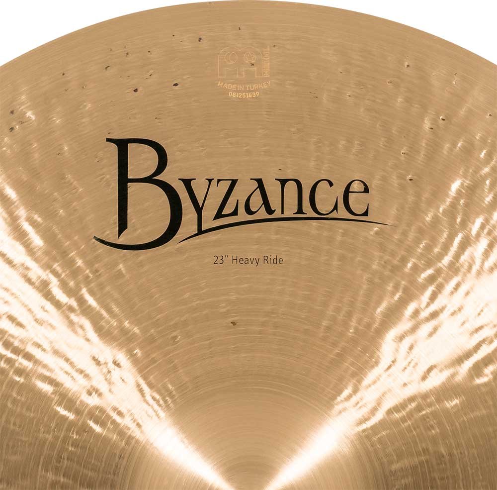 'Ride 23'' Heavy, Série Byzance Traditionnelle. Les cymbales de la série Byzance Traditionnelle sont fabriquées artisanalement dans notre usine en Turquie par des spécialistes et en respectant la tradition tout au long du processus. Toutes les cymbales sont réalisées avec des disques en alliage de bronze B20. Plusieurs techniques sont impliquées dans le processus, tant le martelage que le tournage. La finition traditionnelle donne à la série le son classique de la cymbale turque que nous entendons depuis plus d'un siècle.