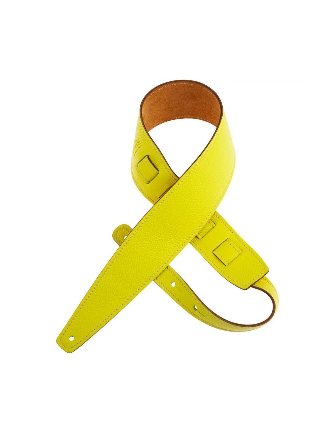 MAGRABO' HOLES HS COLORS LIME 6 CM. Tracolla per chitarra e basso elettrico realizzata in vera pelle di alta qualità 100% Made in Italy, cuciture in cotone ecru, rivestimento interno scamosciato, larghezza 6cm e lunghezza regolabile da 105 a 142 cm.