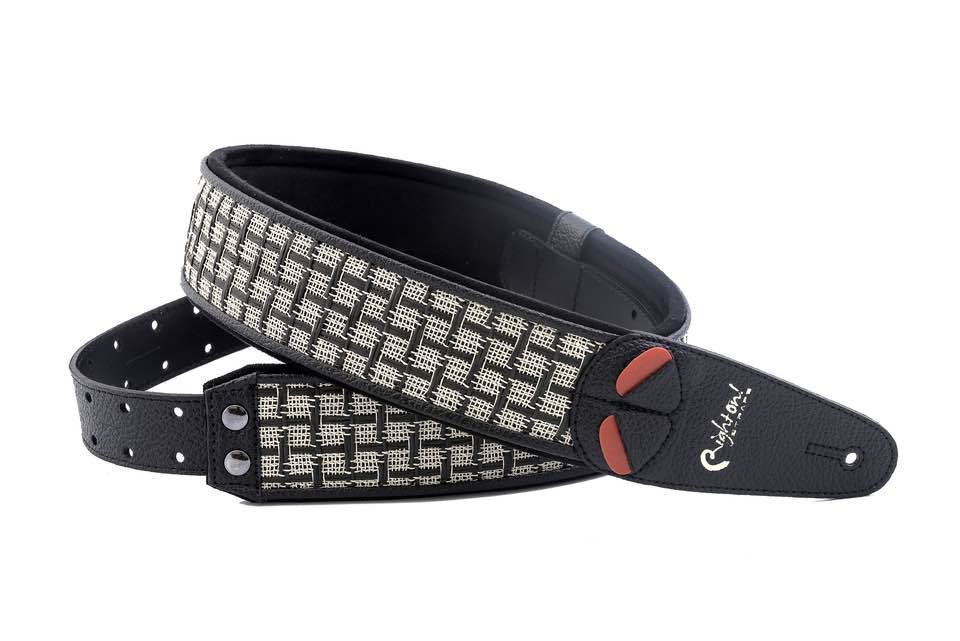 Bandoulière fabriquée de manière artisanale avec des matériaux écologiques de haute technologie respectueux de l'environnement et dépourvue de tout tissu animal, caractérisée par des finitions soignées dans les moindres détails, des décorations qui reprennent les tissus utilisés dans les façades des amplificateurs classiques, rembourrage en latex haute densité (5 mm), système de réglage RAS, porte médiators intégré. Couleur noir/gris, largeur 6 cm, longueur réglable de 95 cm à 143 cm, ultra légère. Indiquée pour guitare et basse.