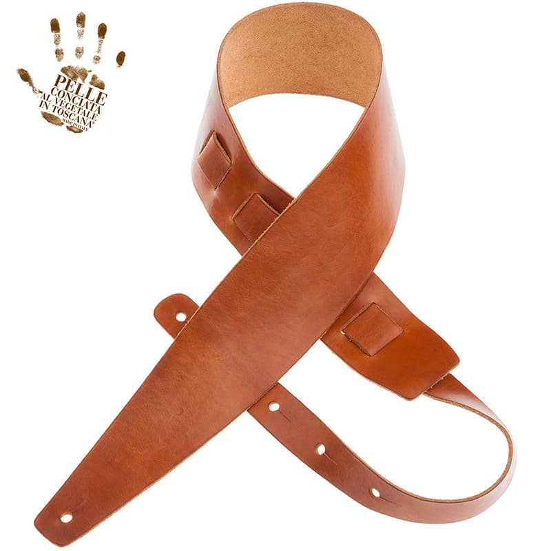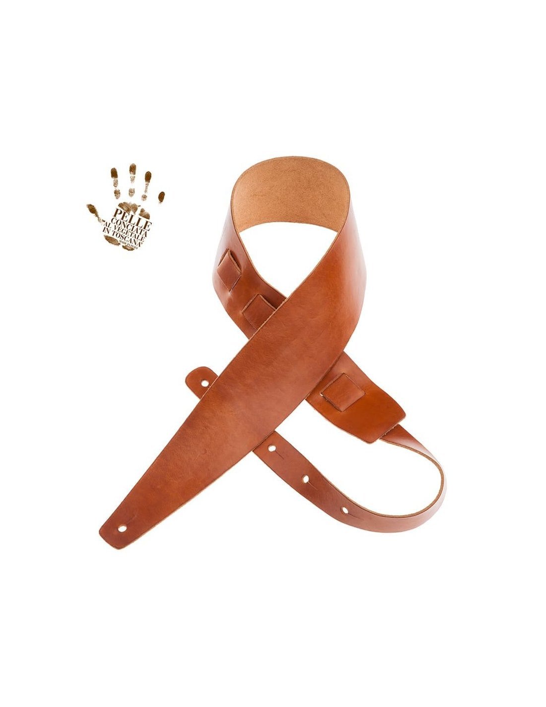 MAGRABO' HOLES HC STONE WASHED MARRONE 8CM. Tracolla per chitarra e basso elettrico realizzata in vera pelle di alta qualità 100% Made in Italy, Concia al Vegetale certificata, senza cuciture, realizzata tramite lavaggio con pietre e rocce, crematura e lucidatura manuale, larghezza 8cm e lunghezza regolabile da 105 a 142 cm.