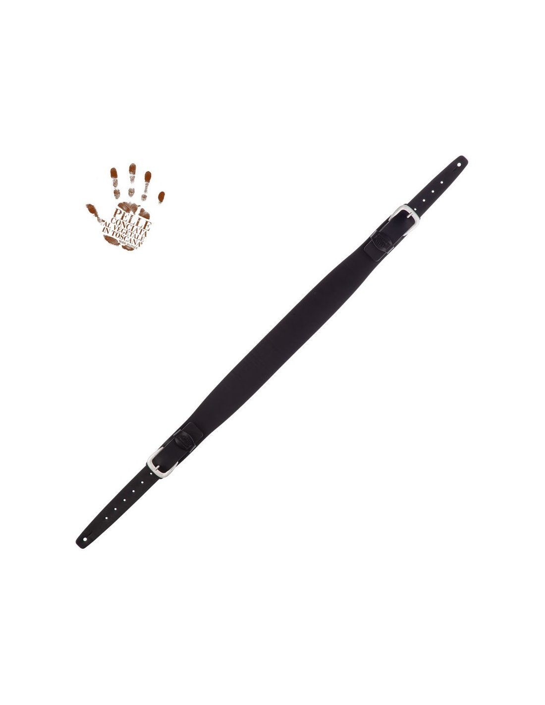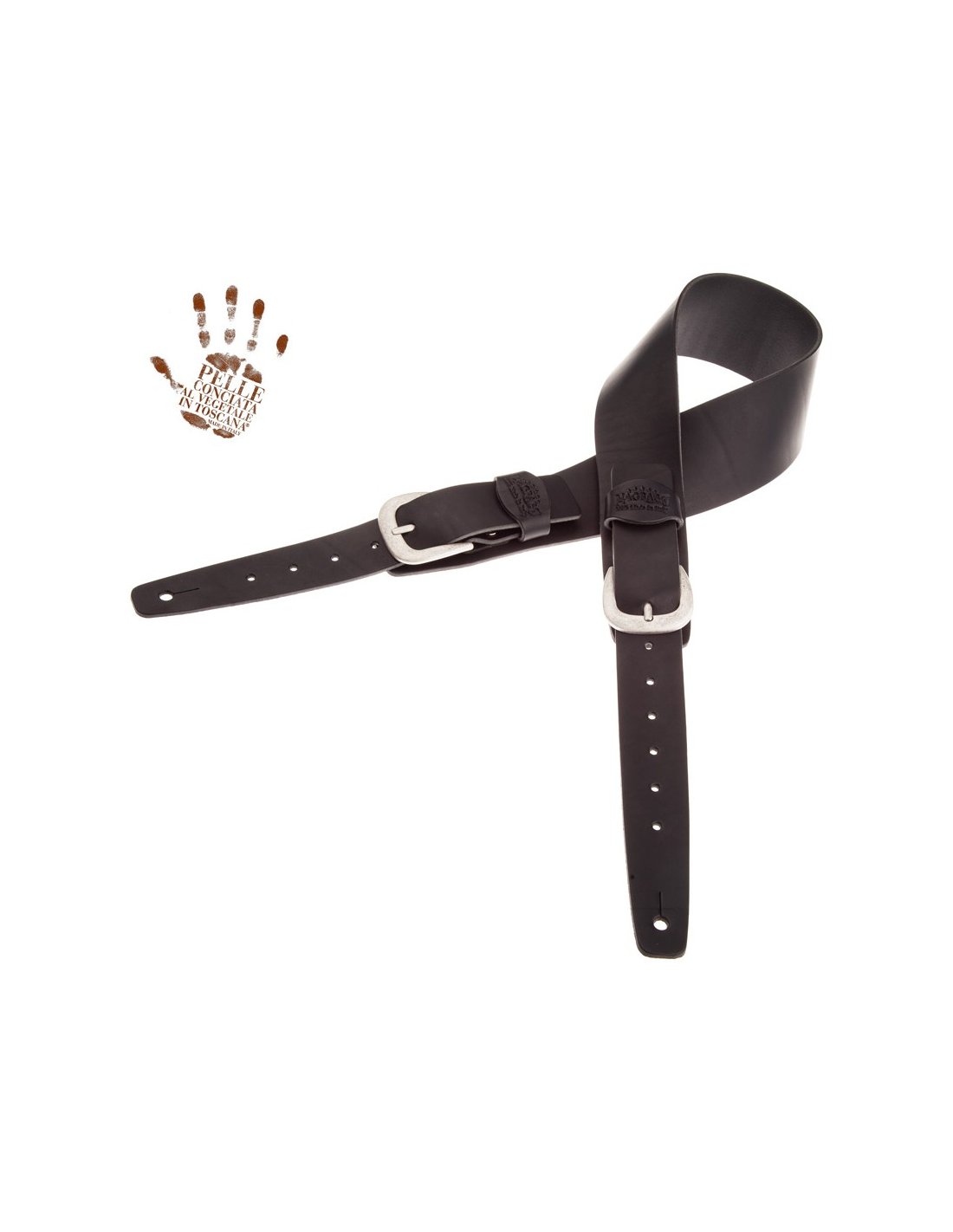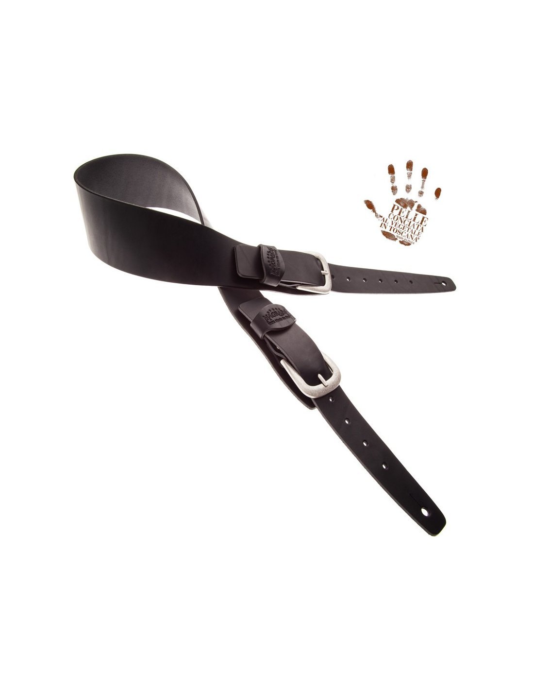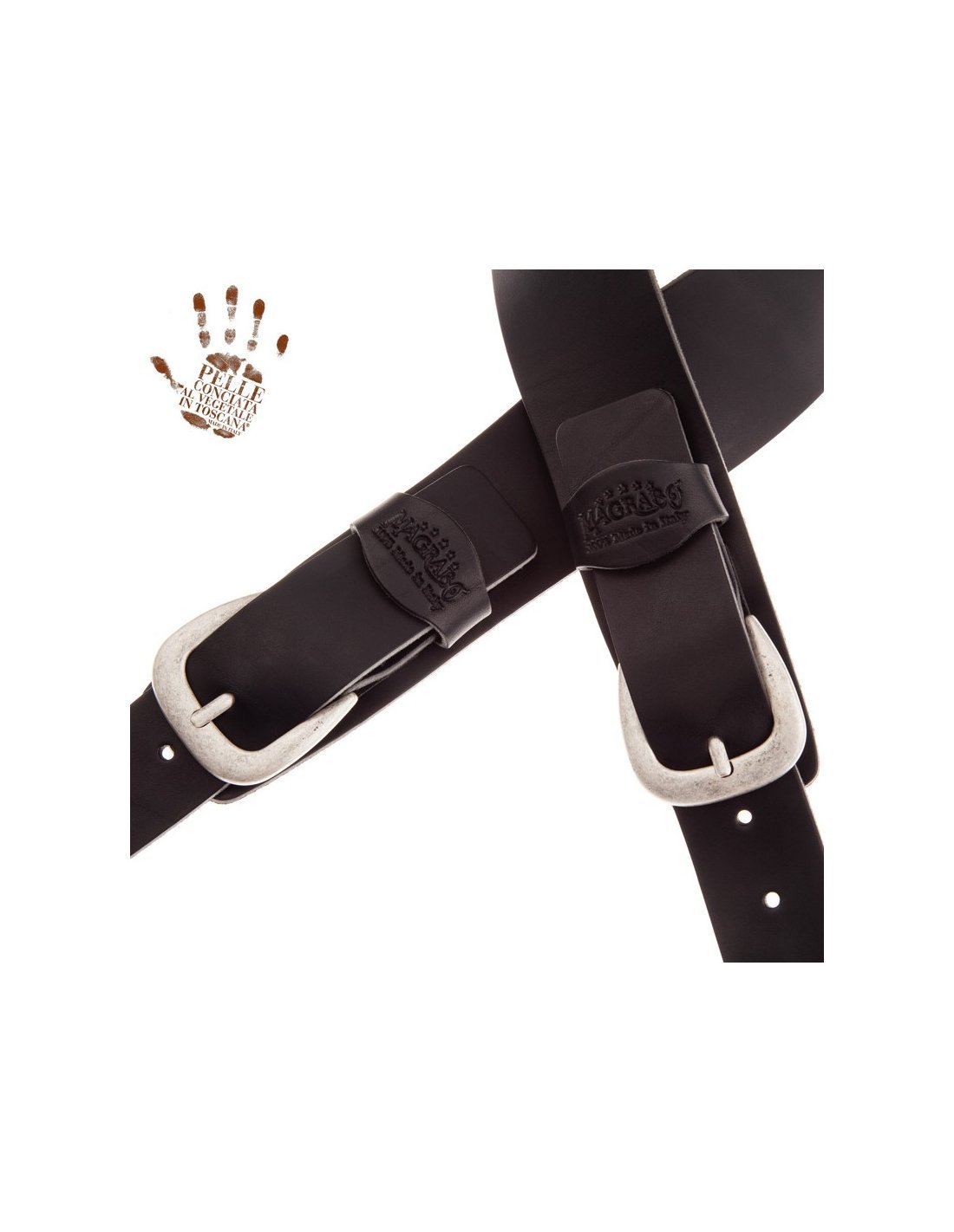 MAGRABO' TWIN BUCKLE TC CORE NERO 7cm FIBBIE CLASSIC ARGENTO. Tracolla per chitarra e basso elettrico realizzata in pelle Twin Buckle TC Core di alta qualità 100% Made in Italy conciata al vegetale, senza cuciture, 4 code componibili in dotazione, fibbie classic con finitura Argento Antico, larghezza 7 cm e lunghezza regolabile da 86 a 162 cm.
