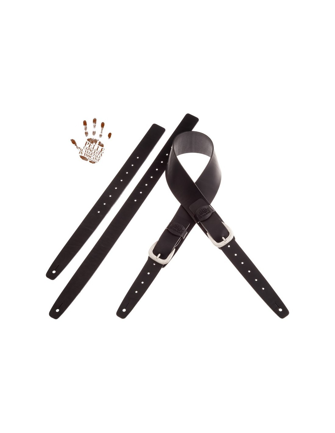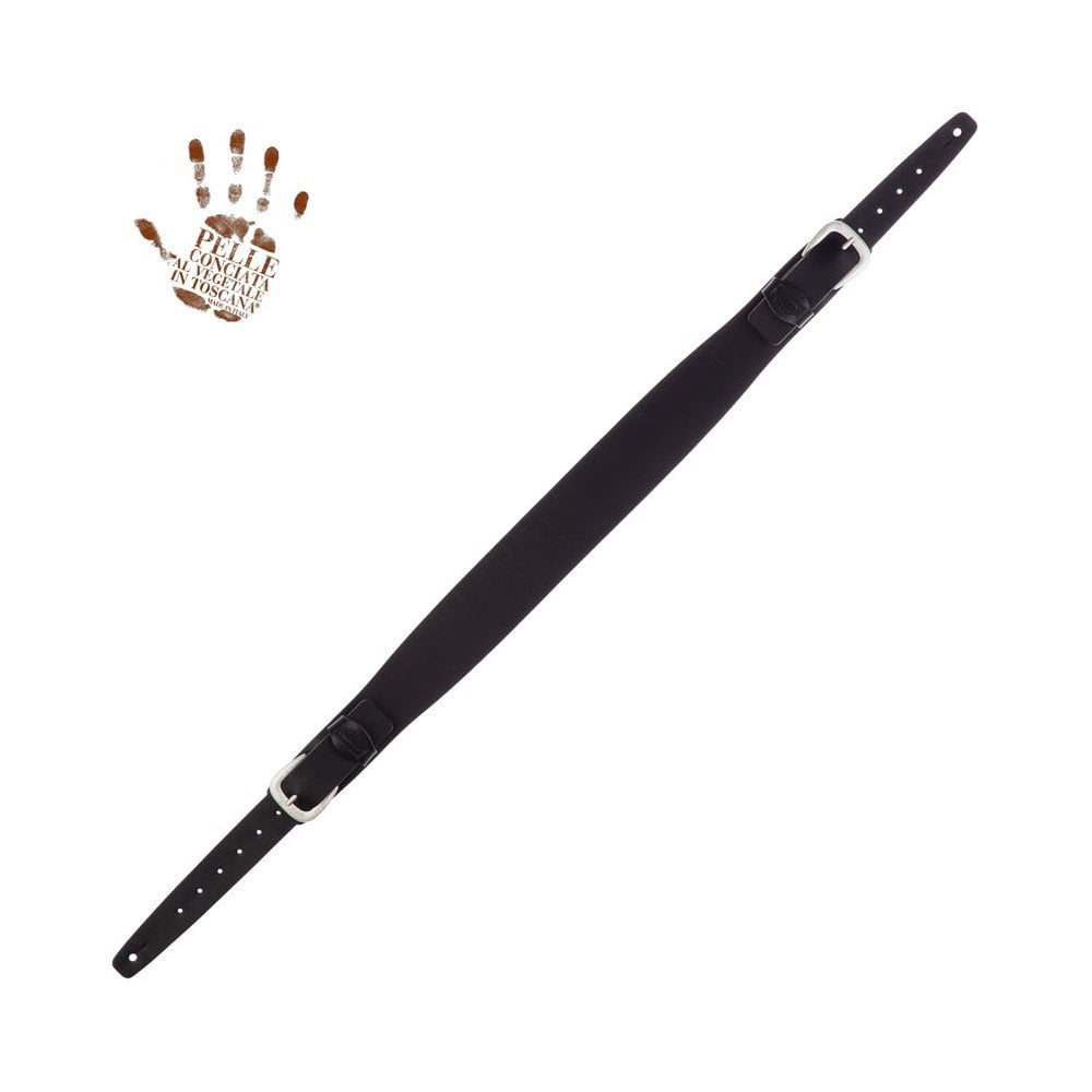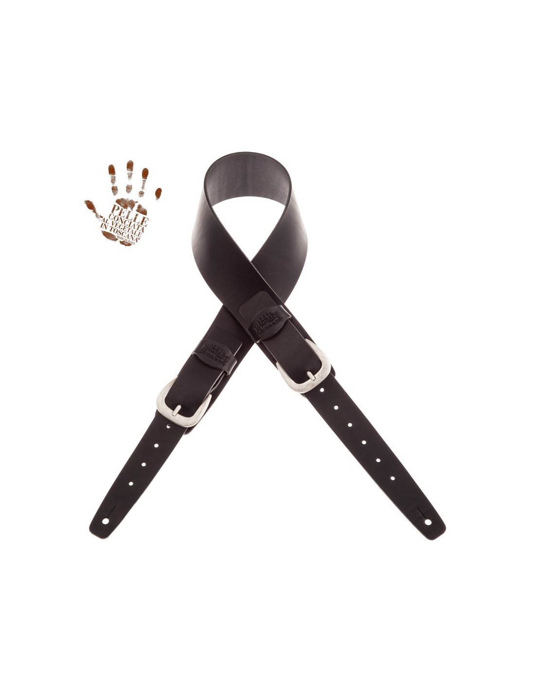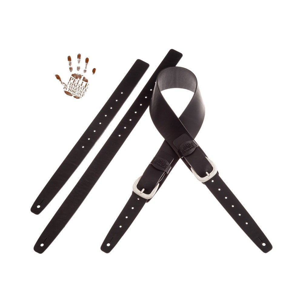 MAGRABO' TWIN BUCKLE TC CORE NERO 7cm FIBBIE CLASSIC ARGENTO. Tracolla per chitarra e basso elettrico realizzata in pelle Twin Buckle TC Core di alta qualità 100% Made in Italy conciata al vegetale, senza cuciture, 4 code componibili in dotazione, fibbie classic con finitura Argento Antico, larghezza 7 cm e lunghezza regolabile da 86 a 162 cm.