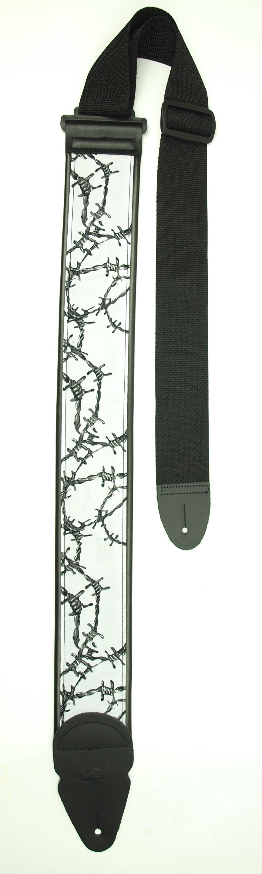 Sangle pour guitare 3” en tissu imprimé, rembourrage en mousse, embouts en cuir Sangle pour guitare 3” en tissu imprimé, rembourrage en mousse, embouts en cuirCARACTÉRISTIQUES PRINCIPALESLargeur : 3”Matériau : Tissu imprimé, Rembourrage en mousse, Embouts en cuirMotif : Barbed Wire