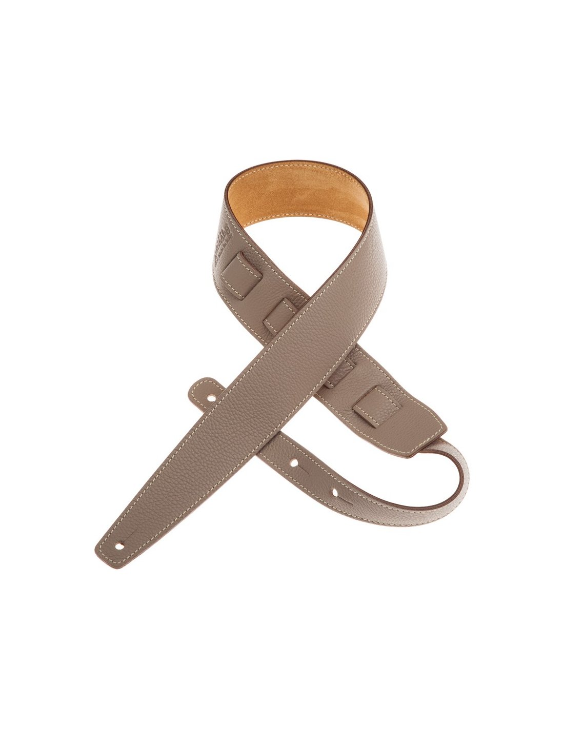 HOLES HS COLORS KAKI 6 CM. Tracolla per chitarra e basso elettrico realizzata in vera pelle di alta qualità 100% Made in Italy, cuciture in cotone ecru, rivestimento interno scamosciato, larghezza 6cm e lunghezza regolabile da 105 a 142 cm.