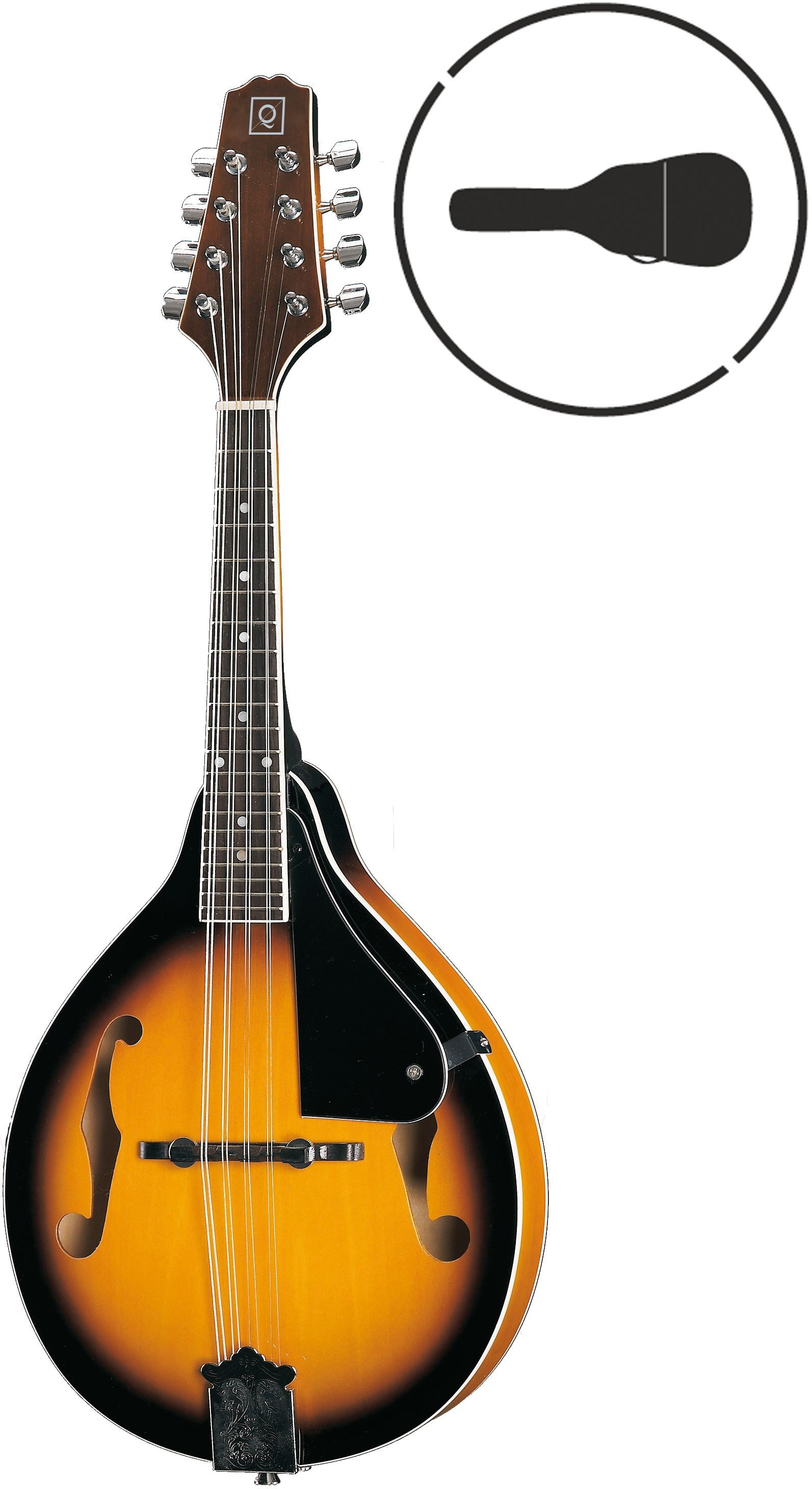 Mandolino. Corps en tilleul. Manche en 'palissandre composite'. Binding blanc. Tête chromée. Finition sunburst vintage. Version électrifiée disponible avec contrôle du volume et des tonalités. Étui inclus.