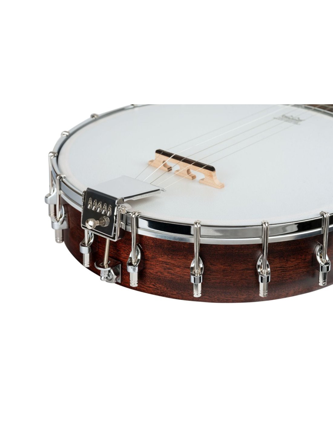 'Banjo 5-Corde Open back Mahogany Satin Whiskey Burst. La série Americana allie l'aspect traditionnel aux caractéristiques modernes, tout comme ses racines musicales. Des finitions comme le Distressed Satin Whiskey Burst ou le Distressed Satin Denim soulignent son origine. Dans la série Americana, vous pouvez trouver les instruments typiques pour le blues, le bluegrass et le folk.Banjo à 5 cordesOpen BackManche en acajou, finition satinée whisky burstTouche en palissandreDos et éclisses en érable, finition satinée whisky burst18 frettesmatériel chroméPeau Remo, sabléePont en érable/ébène Largeur au sillet: 31mm / 1.22''Frettes: 22Ortega2023'