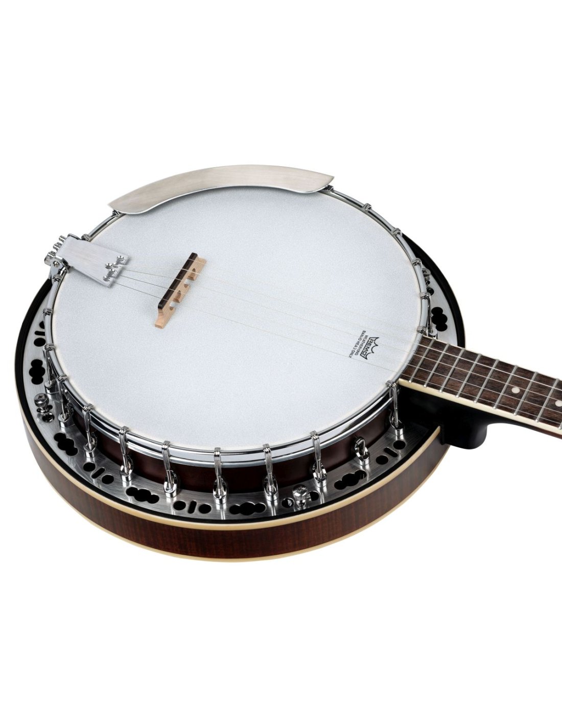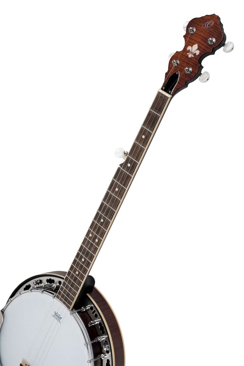'Banjo 5-cordes Érable Flammé / Acajou Satin Whiskey Burst. La série Americana allie l'apparence traditionnelle aux caractéristiques modernes, tout comme ses racines musicales. Des finitions comme le Distressed Satin Whiskey Burst ou le Distressed Satin Denim mettent en valeur son origine. Dans la série Americana, vous pouvez trouver les instruments typiques pour le blues, le bluegrass et le folk. Les banjos ont des caractéristiques modernes et un aspect classique.Banjo à 5 cordesManche en acajou, finition satinée whiskey burstTouche en palissandreFond en érable flammé, finition satinée whiskey burstBandes en acajou, finition satinée whiskey burst24 frettesmatériel chroméPeau Remo, sabléeRepose-bras chroméPont en érable/ébène Largeur au sillet : 31mm / 1.22''Frettes : 22Ortega2023'