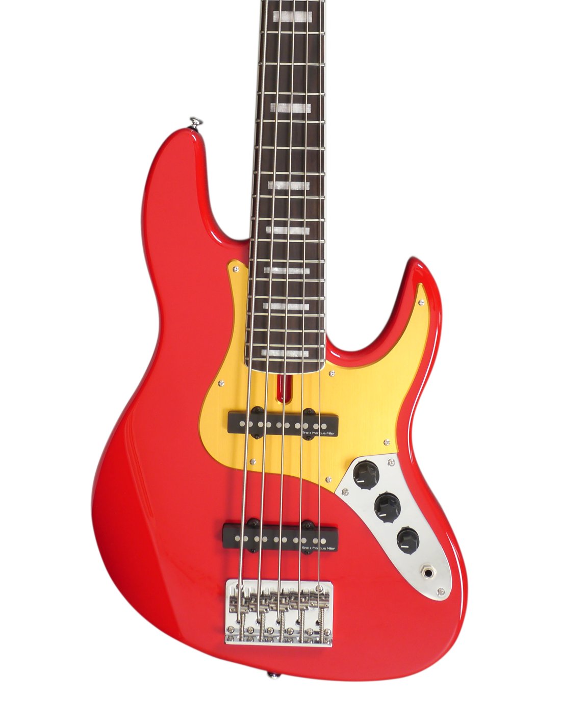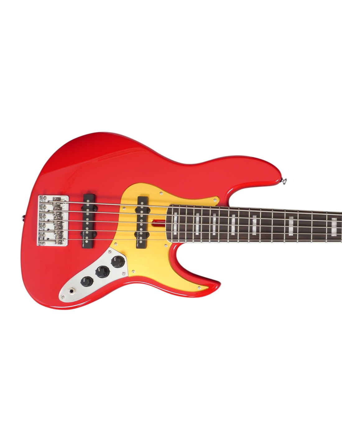 Corps : Aulne d'Amérique du Nord. Forme du Corps : Marcus Miller Jazz Type 24 frettes. Manche : Pièce Unique Érable dur torréfié. Forme du Manche : C-Shape. Échelle : 34''. Touche : Palissandre (Bords Arrondis). Rayon de la Touche : 9.5''. Frettes : 2.4mm Medium. 24 frettes. Sillet : Bone Nut, 5 cordes - Largeur 46mm. Binding : Monostrato BK. Inlay : BK Square Block. Jonction Manche : Plaque en Acier à 4 Vis. Micros : Ensemble Marcus Vintage-J Revolution. Électronique : Contrôles de Ton et Volume Passifs. Contrôles : Volume (PU Manche), Volume (PU Chevalet), Ton (Master). Boutons : BK Jazz. Chevalet : Marcus Miller Vintage-S. Mécaniques : Premium Open-Gear. Finition des Mécaniques : Chrome. Plaque de protection : Aluminium doré. Finition Dakota Red.