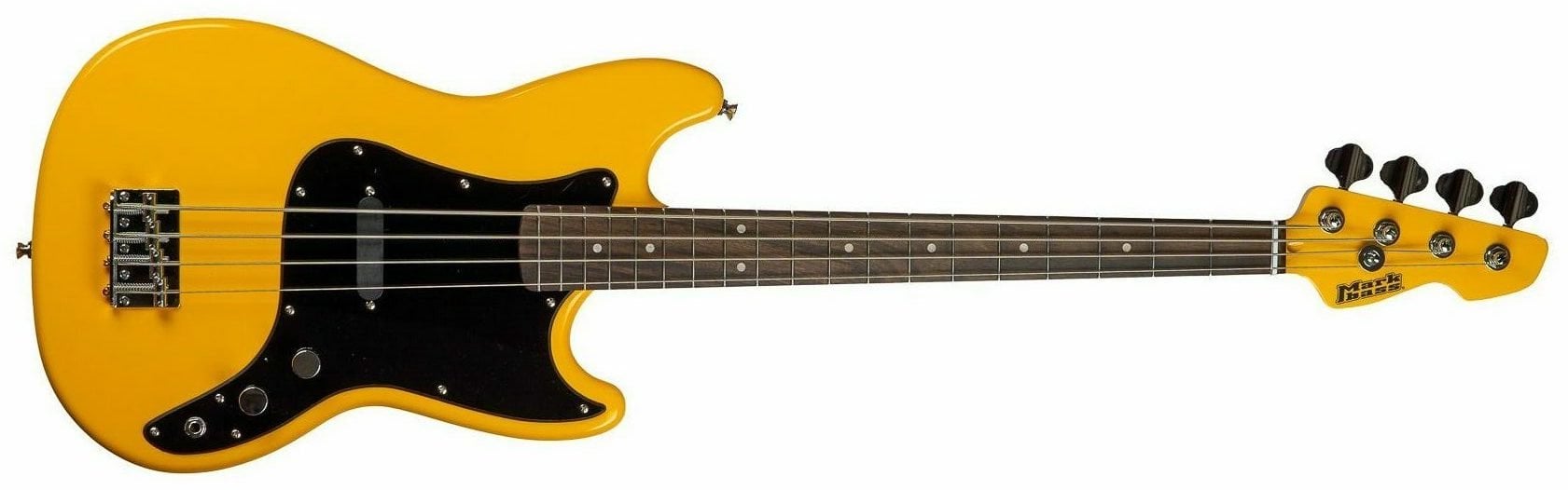 MARK BASS YELLOW LITTLE BASS est une basse électrique à 4 cordes Mark Bass Yellow Series à échelle courte avec un corps en peuplier, un manche en érable, un doigté en laurier échelle 30” avec 20 frettes Medium, des incrustations Pearl Dots, un matériel chromé, des mécaniques chromées et un pont de style Vintage à 4 sellettes. L'électronique se compose d'un micro MB Single Coil au centre avec contrôle du volume et du ton. Inclut une housse et une sangle.