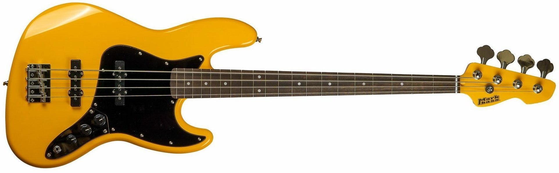 MARK BASS YELLOW JB est une basse électrique à 4 cordes de la série Mark Bass Yellow de style Jazz Bass avec un corps décalé en peuplier, un manche fin en érable, un touche en laurier échelle 34” avec 20 frettes Medium, des incrustations en perles, un matériel chromé, des mécaniques chromées et un pont de style Vintage à 4 sillets. L'électronique en configuration JB se compose de 2 micros MB Single Coil au chevalet et au manche avec 2 contrôles de volume et un contrôle de tonalité. Inclut une housse et une sangle.