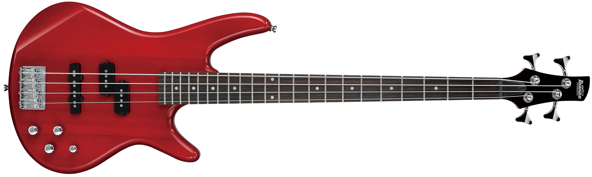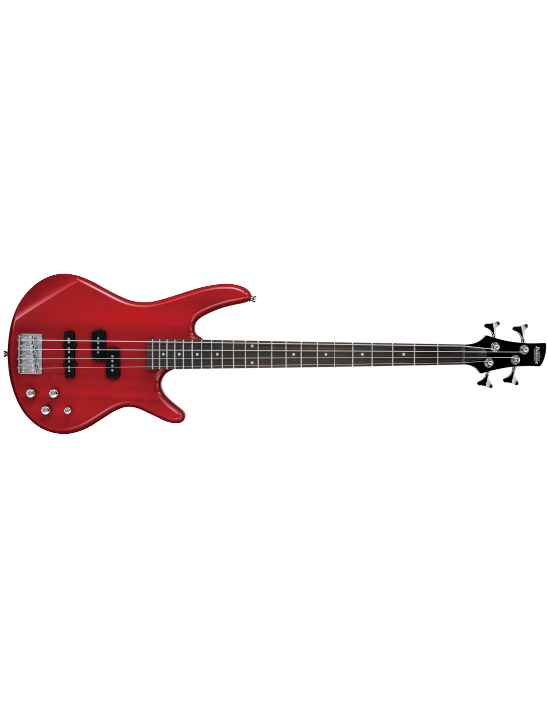 IBANEZ GSR200-TR est une basse électrique à 4 cordes, modèle Ibanez SR GIO GSR200, avec un corps en Okoumé, un manche en érable GSR4, un touche en Purpleheart à rayon 12" avec 22 frettes Medium et des incrustations White dot inlay, un sillet de 41mm en PPS, un matériel chromé, des mécaniques Ibanez Bass fermées sous pression chrome et un pont fixe Ibanez B10 à 4 selles. L'électronique active en configuration PJ, consiste en 1 micro Single Coil Dynamix J micro de chevalet passif au pont et 1 micro Split Coil Dynamix P micro de manche passif au manche, avec préampli intégré Phat II pour ajouter de la puissance aux basses fréquences, 2 contrôles Master Volume et contrôle Master Tone.