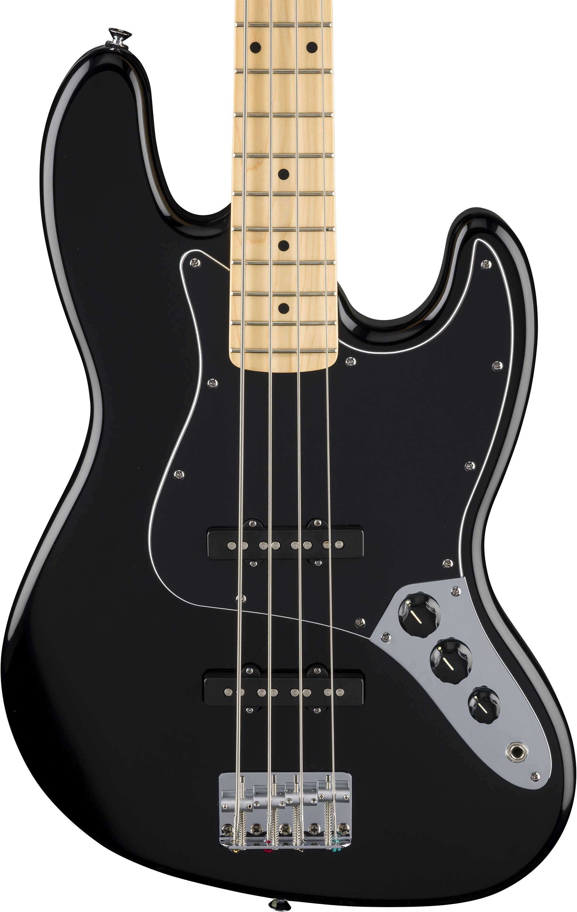 FENDER STANDARD JAZZ BASS MN BLACK est une basse électrique à 4 cordes, série Fender Standard modèle Jazz Bass, avec un corps en Peuplier à finition Gloss Polyurethane, un manche en Érable à profil Modern "C", un doigté en Érable à rayon 9,5" avec 20 frettes Medium Jumbo et des incrustations Black Dots, un sillet de 38mm en Micarta, Truss Rod Dual-Action Head Adjust, matériel Chrome, mécaniques Fender Standard Open-Gear avec clés Clover avec un abaisse-cordes Vintage-Style Disc et un pont Standard Top-Load avec 4 selles en acier Satin. L'électronique se compose de 2 micros Standard Single-Coil Jazz Bass au chevalet et au manche avec 2 contrôles Master Volume et contrôle Tone.