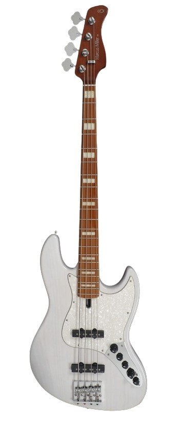 Corps : Frêne (Swamp Ash). Profil du corps : Marcus Miller Jazz. Manche : Érable torréfié (satiné), Profil en C. Touche (bords de touche arrondis) : Érable torréfié. Rayon : 9.5’’. Sillet : 38mm. Bolt-on. Micro : Ensemble Marcus Super-J Revolution. Électronique : Marcus Heritage-3 avec contrôle de fréquence. Contrôles : Volume / Ton (pot à double), Mélangeur de micro, Aigus, Medium / Boost/Coupe Medium (pot à double), Graves, mini interrupteur Actif/Passif. Plaque de protection : Perle/Ébène. Pont : Marcus Miller Heavymass II. Matériel : Chromé. Finition : Blonde Blanche.
