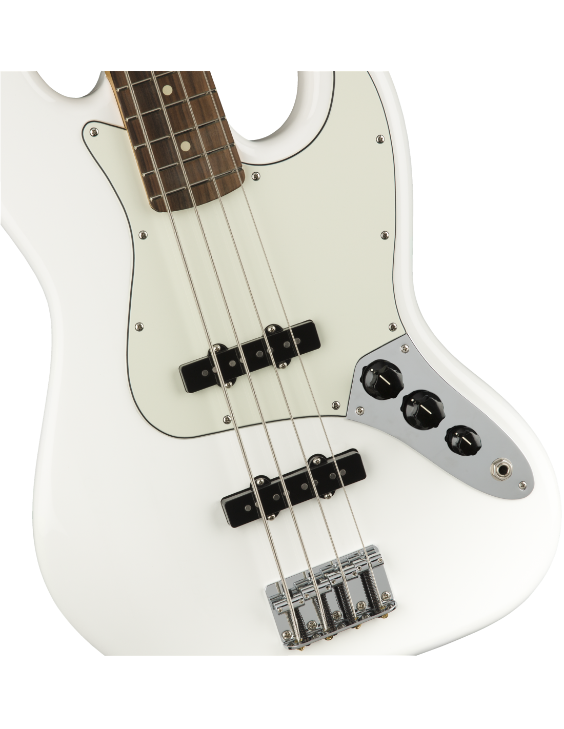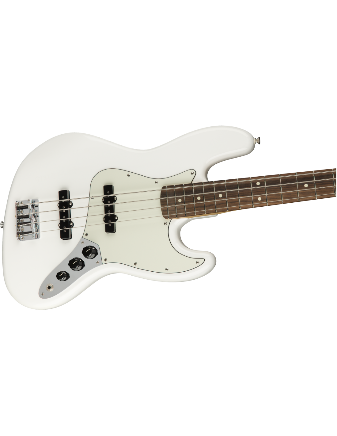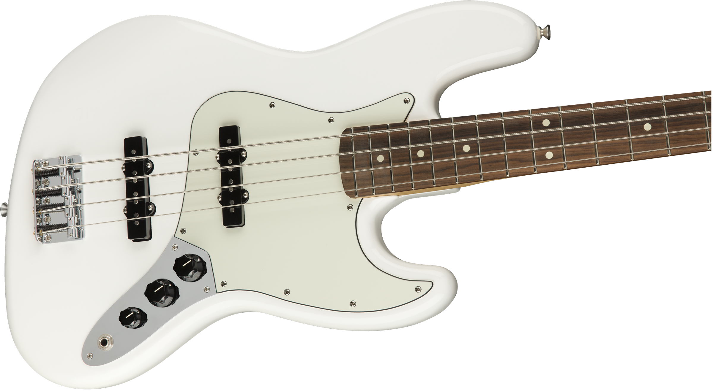 FENDER PLAYER JAZZ BASS PF PWT est une basse électrique à 4 cordes, modèle Fender Player Jazz Bass, avec un corps en Alder (aulne) et une finition Gloss Polyester, un manche en érable à profil Modern C-profile, une touche en Pau Ferro à rayon 9,5" avec 20 frettes Medium Jumbo et des incrustations White Dots, un sillet en os synthétique, un matériel chromé, Truss Rod Single Action Head Adjust, mécaniques Fender Standard Open-Gear avec un arbre de réglage Vintage-Style Disc, un pont Standard à 4 sellette et un pickguard 3-Ply Parchment. L'électronique se compose de 2 micros Single-Coil Player Series Alnico 5 Jazz Bass avec 2 contrôles Master Volume et contrôle Master Tone