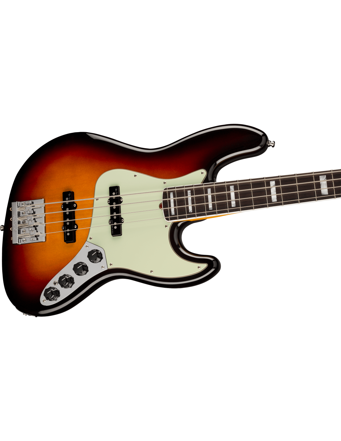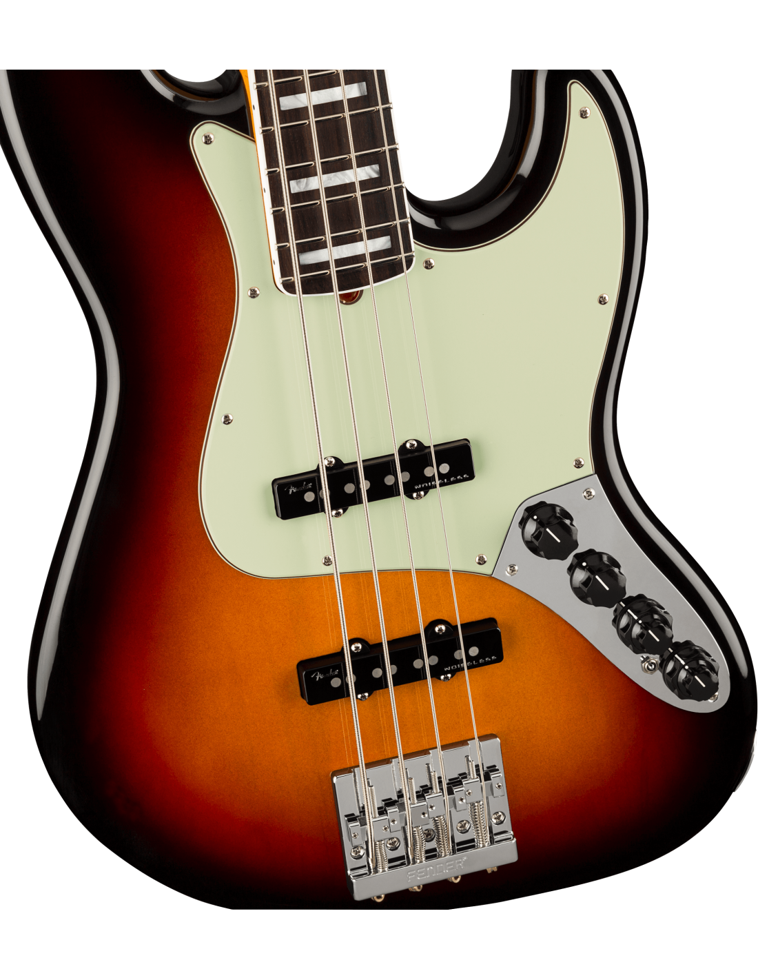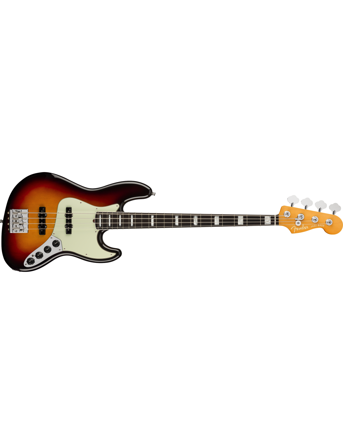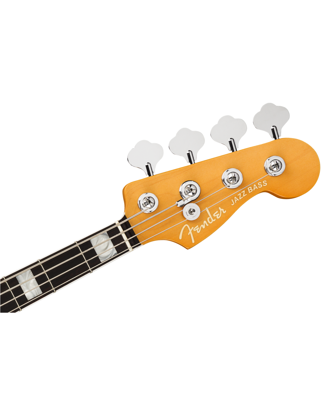 FENDER AM ULTRA JAZZ BASS RW ULTRABURST est une basse électrique à 4 cordes, modèle American Ultra Jazz Bass, avec un corps en Alder (aulne) et une finition Gloss Uretane, un manche en érable Quartersawn à profil Modern "D", un doigté en palissandre à rayon composite 10"-14" avec 21 frettes Medium Jumbo et des incrustations White Pearloid Blocks, Truss Rod Bi-Flex, sillet en os, matériel nickelé, mécaniques Fender "F" Light-Weight Vintage-Paddle Keys avec des tiges coniques et un pont Fender Hi-Mass à 4 selles. L'électronique se compose de 2 micros Single Coil Ultra Noiseless Vintage Jazz Bass au chevalet et au manche avec préampli actif/passif sélectionnable via un interrupteur, contrôle Master Volume, Pan Pot (Sélecteur de micros), contrôles pour Eq à 3 bandes Treble/Middle/Bass