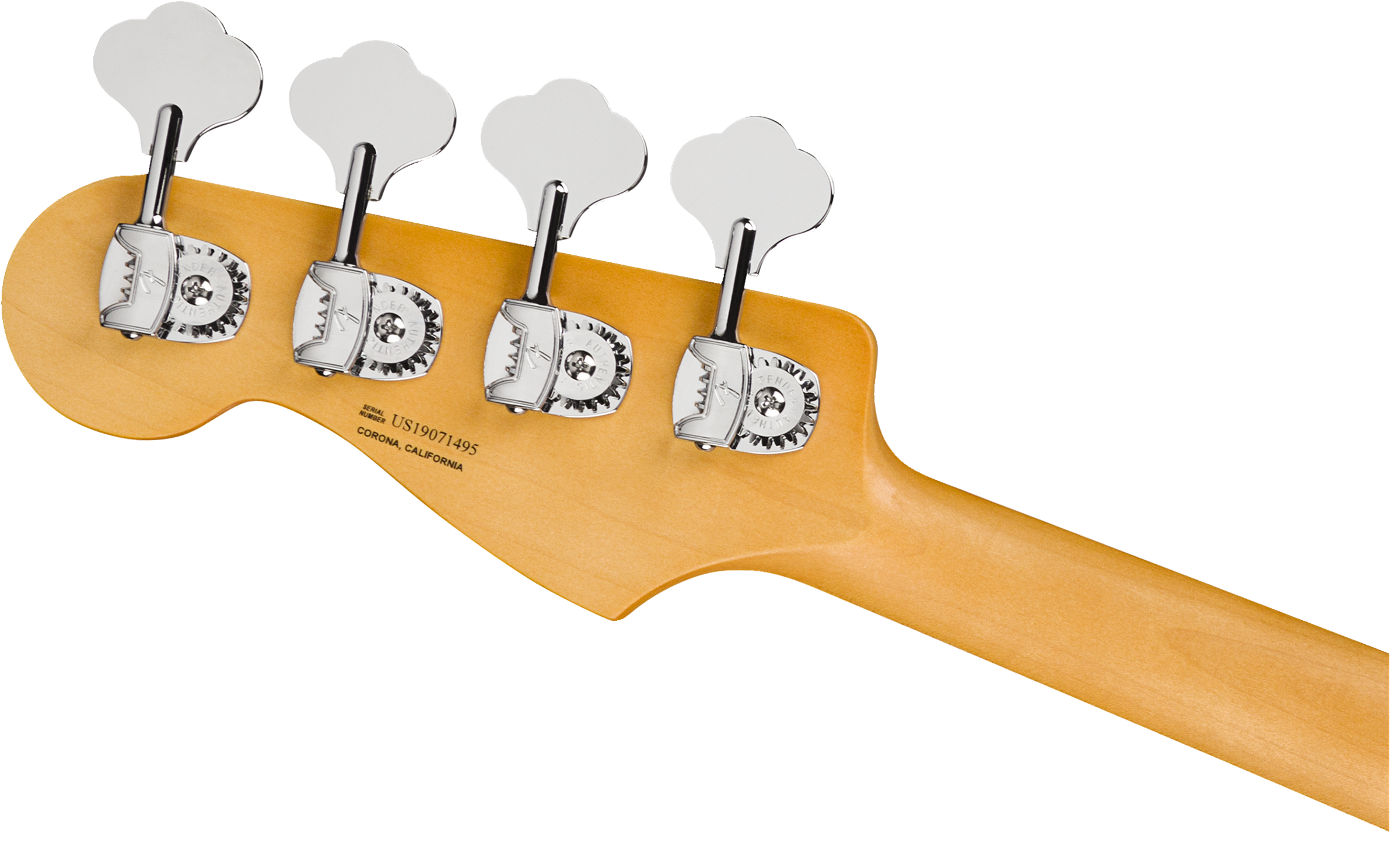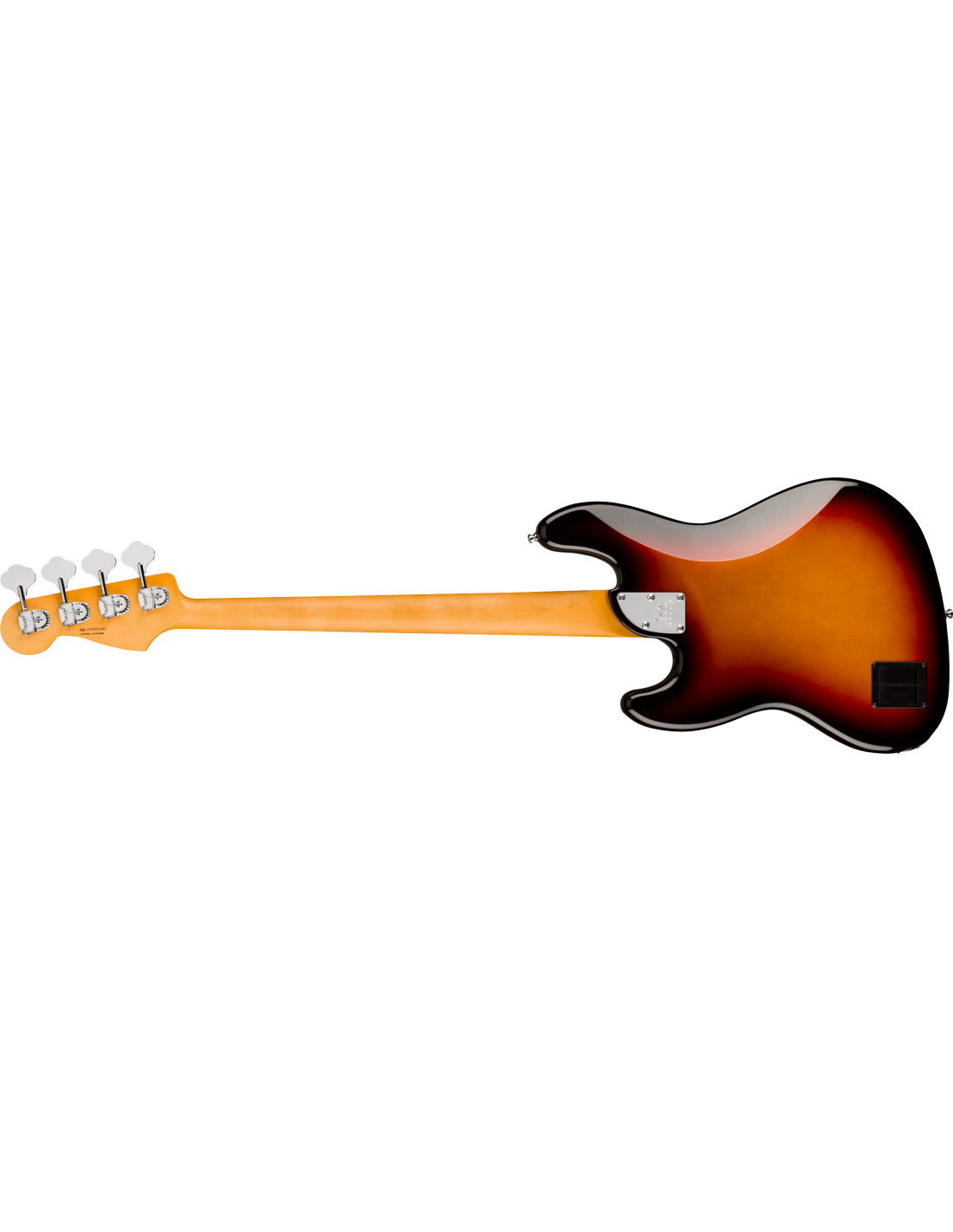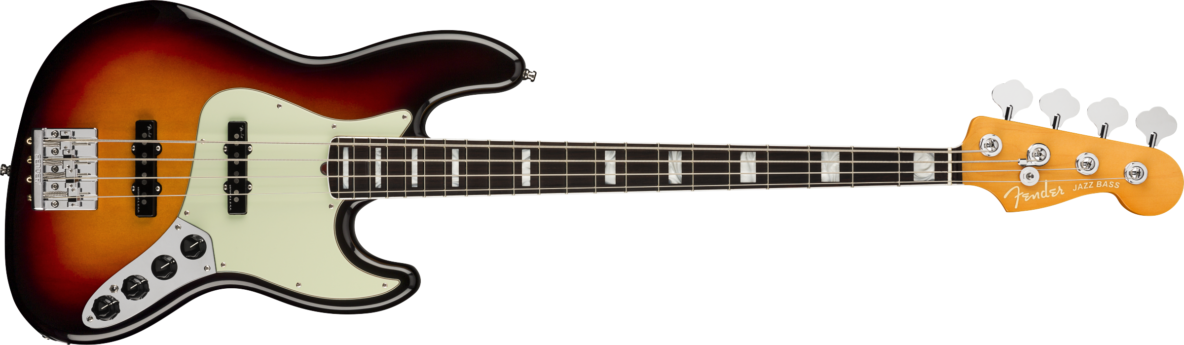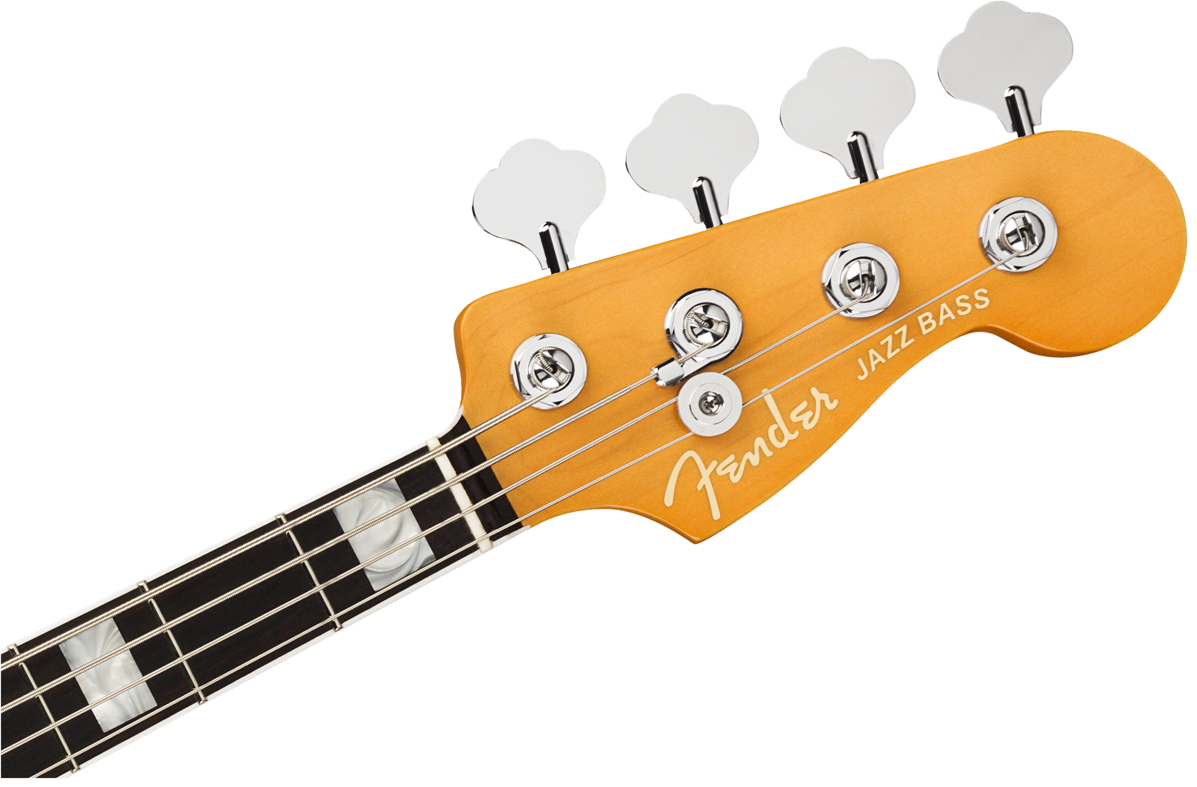 FENDER AM ULTRA JAZZ BASS RW ULTRABURST est une basse électrique à 4 cordes, modèle American Ultra Jazz Bass, avec un corps en Alder (aulne) et une finition Gloss Uretane, un manche en érable Quartersawn à profil Modern "D", un doigté en palissandre à rayon composite 10"-14" avec 21 frettes Medium Jumbo et des incrustations White Pearloid Blocks, Truss Rod Bi-Flex, sillet en os, matériel nickelé, mécaniques Fender "F" Light-Weight Vintage-Paddle Keys avec des tiges coniques et un pont Fender Hi-Mass à 4 selles. L'électronique se compose de 2 micros Single Coil Ultra Noiseless Vintage Jazz Bass au chevalet et au manche avec préampli actif/passif sélectionnable via un interrupteur, contrôle Master Volume, Pan Pot (Sélecteur de micros), contrôles pour Eq à 3 bandes Treble/Middle/Bass