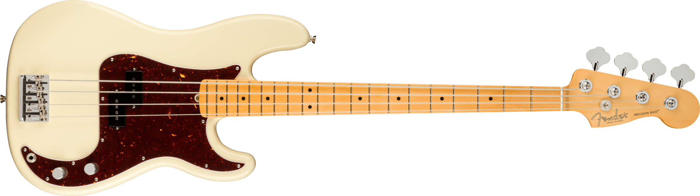 Basso Elettrico Fender Precision Bass American Professional II MN couleur Olympic White avec un manche en érable. Le Fender Precision Bass American Professional II est une basse électrique à 4 cordes, s'inspirant de plus de soixante ans d'innovation, d'inspiration et d'évolution pour répondre aux besoins du musicien professionnel d'aujourd'hui.