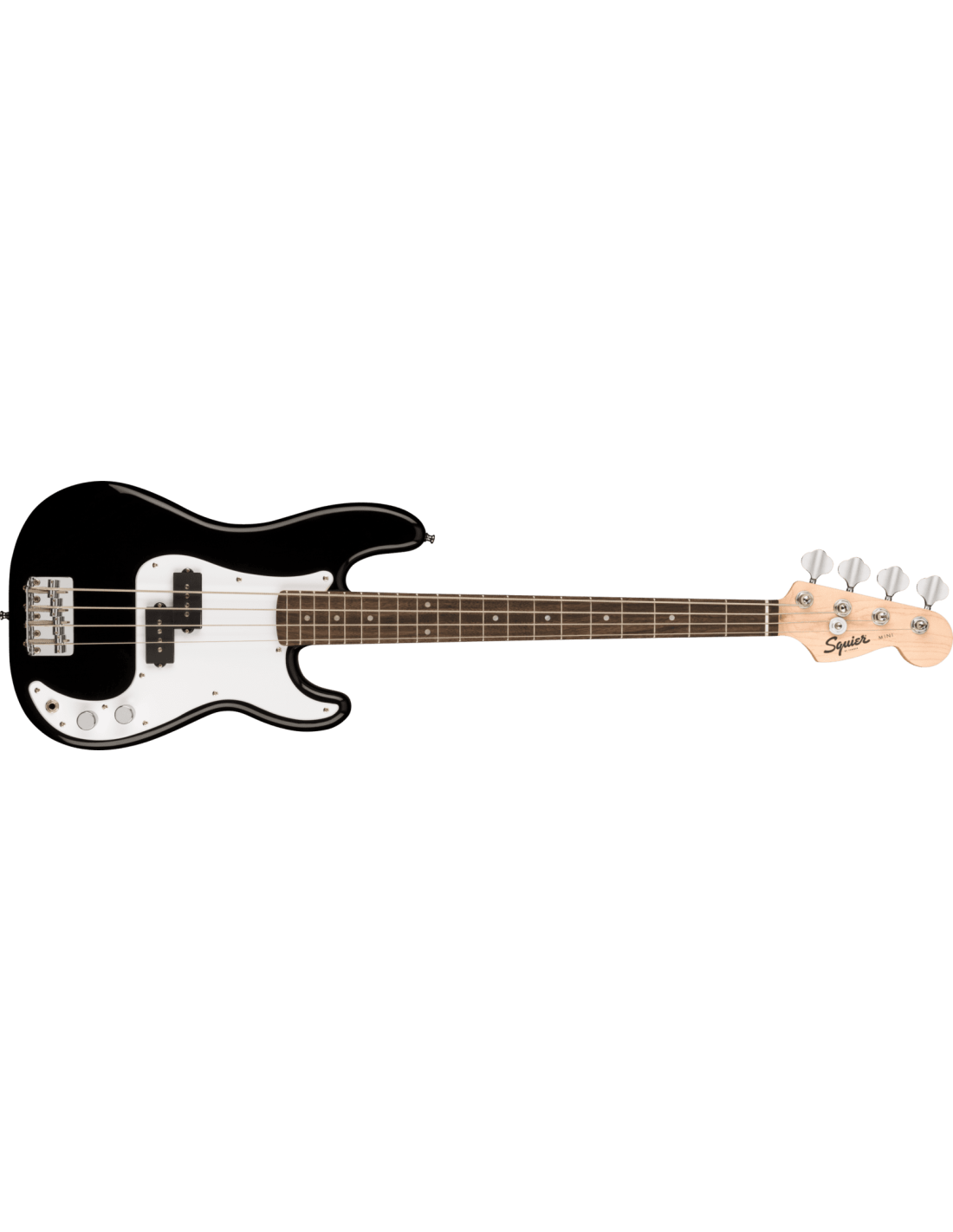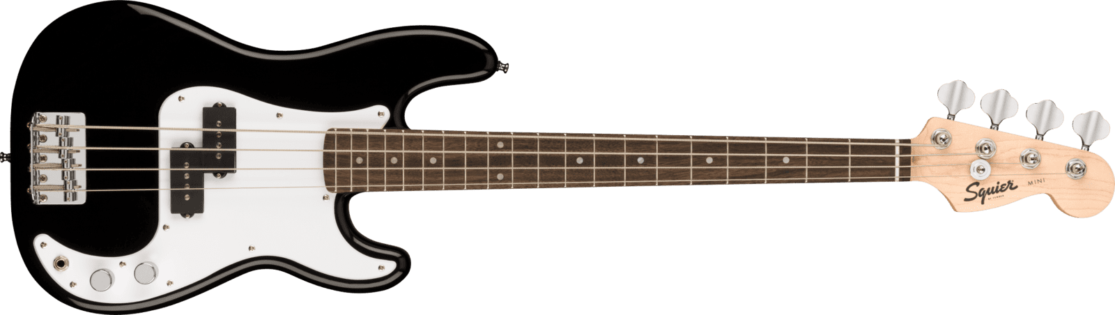 SQUIER MINI P BASS LRL BLK est une basse électrique à 4 cordes à échelle réduite 3/4 avec un corps en Peuplier, un manche en érable profilé en forme de C, un doigté en laurier indien à rayon de 9,5" avec 20 frettes Narrow Tall et des incrustations en points de perle, un sillet en os synthétique, un matériel chromé, des mécaniques Die-Cast Sealed et un pont à 4 selles Vintage Style. L'électronique consiste en 2 micros Squier Split-Coil P-Bass avec des contrôles de volume et de tonalité.