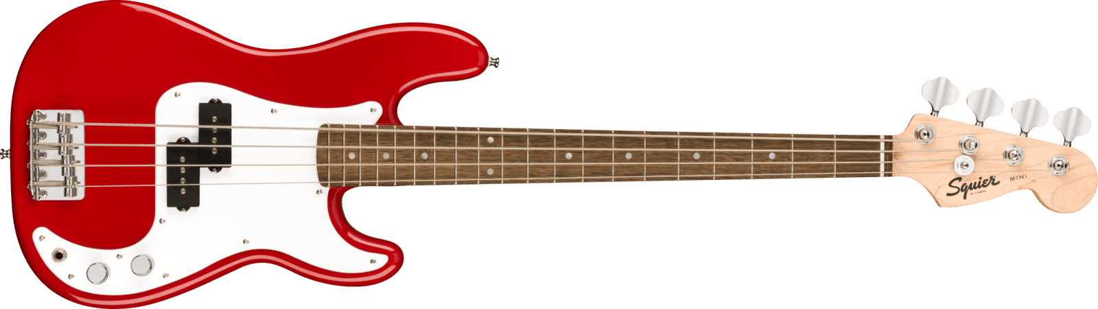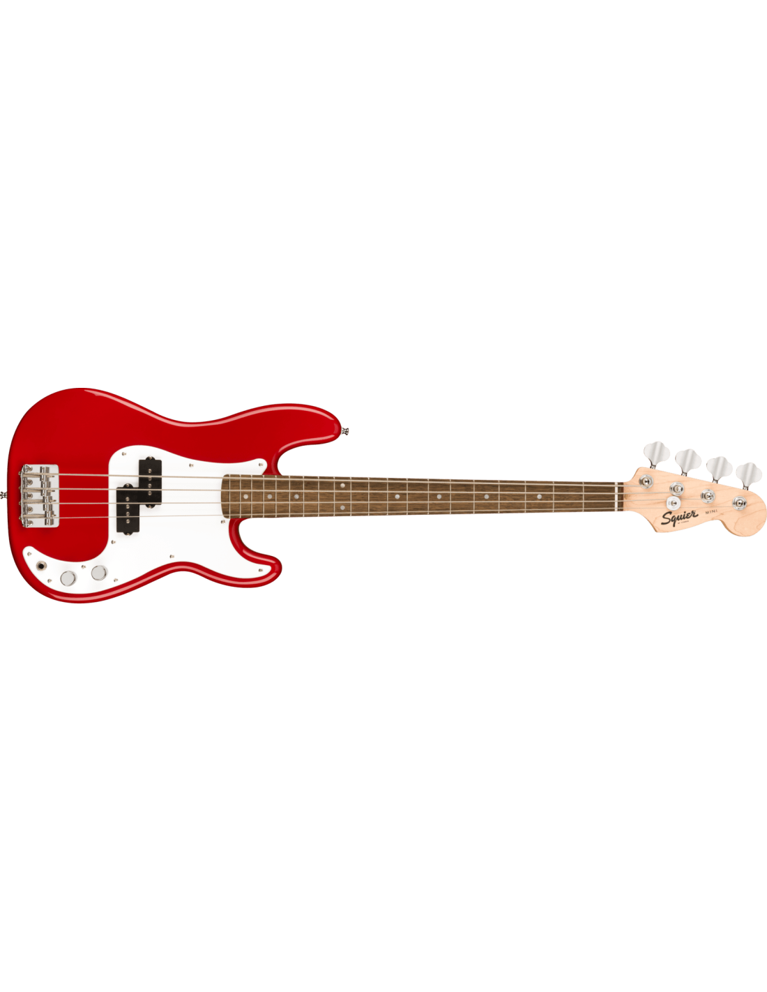SQUIER MINI P BASS LRL DKR est une basse électrique à 4 cordes à échelle réduite 3/4 avec un corps en peuplier, un manche en érable profilé en forme de C, un doigté en laurier indien à rayon de 9,5" avec 20 frettes Narrow Tall et des incrustations en points de perles, un sillet en os synthétique, un matériel chromé, des mécaniques Die-Cast Sealed et un pont à 4 selles Vintage Style. L'électronique consiste en 2 micros Squier Split-Coil P-Bass avec des contrôles de volume et de tonalité.