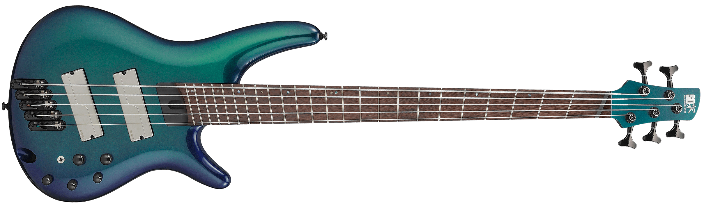 IBANEZ SRMS725-BCM est une basse électrique à 4 cordes, série Ibanez SR Ibanez Bass Workshop modèle Ibanez SRMS725, avec un corps en Okoumé, un manche SRMS5 pour Multi Scale en 5 pièces Érable/Noyer, un doigté multiscala en Panga Panga à rayon 12" avec 24 frettes Medium et des incrustations Off-set White Dots, un sillet de 45mm, du matériel Black, des mécaniques RATIO by Graph Tech Guitar Labs avec un rapport de transmission spécifique pour chaque corde, et un pont MR5S. L'électronique active se compose de 2 micros Fishman Fluence au pont et au manche, avec préampli intégré Fishman avec Eq à 3 bandes, contrôle Master Volume avec push/pull pour mode Single-Coil, contrôle Balancer et switch Voice Select à 3 voies.