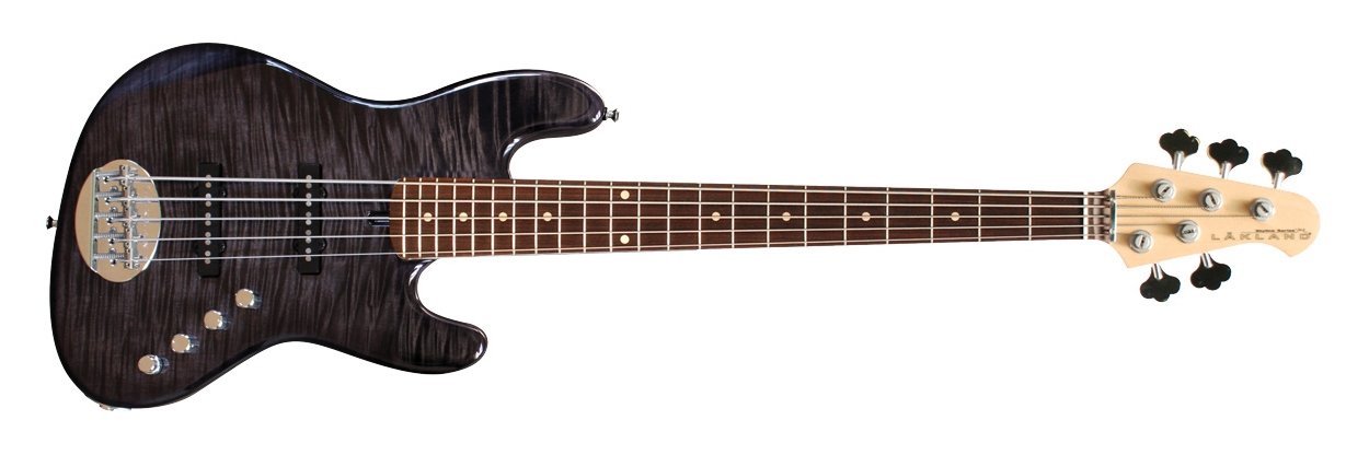 Basso Elettrico Lakland Skyline 55-AJ colore TRANS BLACK. Il Lakland Skyline 55-AJ è un basso elettrico a 5 corde. Le caratteristiche tecniche includono corpo in frassino, top in acero fiammato, manico in acero, tastiera in palissandro, compound radius 10-13", 22 tasti, pickup Lakland J Single Coils, Preamp Bartolini MK-1, controlli Volume, Blend, Midrange, Treble/Bass.