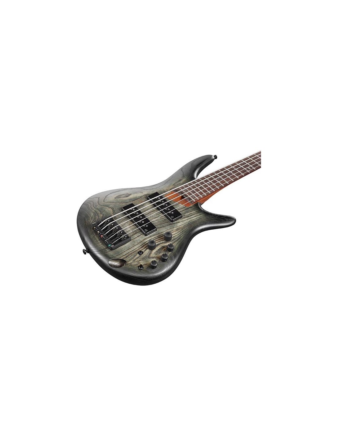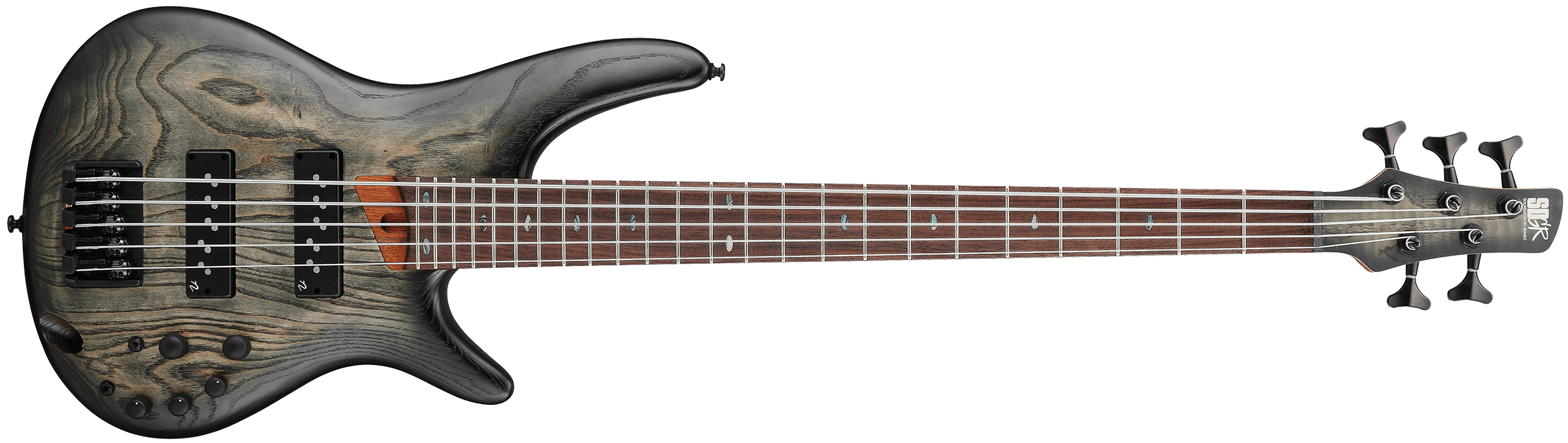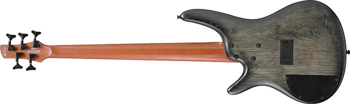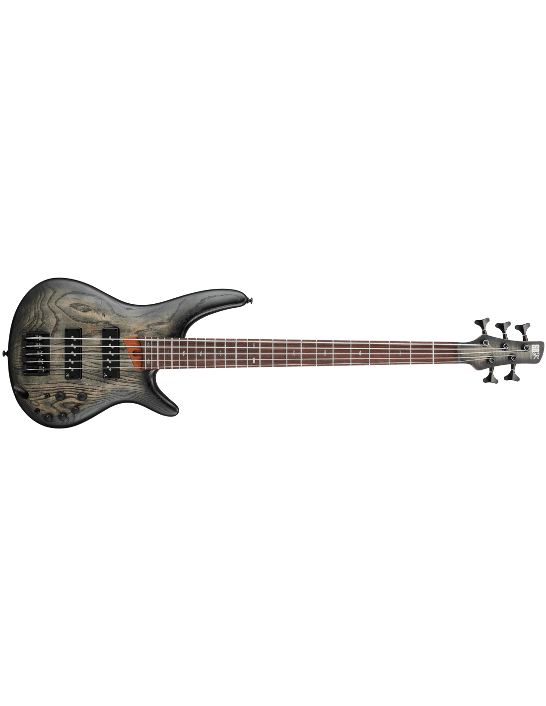 IBANEZ SR605E-BKT est une basse électrique à 5 cordes, modèle Ibanez SR Standard SR605E, avec un corps en frêne, un manche en Jatoba/Noyer 5 pièces SR5, un doigté en Palissandre à rayon de 12" avec 24 frettes Medium et des incrustations en Abalone ovales, un sillet de 45mm en PPS, un matériel noir, des mécaniques Ibanez Bass fermées en fonte noire et un pont fixe Accu-cast B505 à 5 selles. L'électronique active se compose de 2 micros Nordstrand Big Break Passive, avec un égaliseur 3 bandes Ibanez Custom Electronics intégré avec contrôle de tonalité sur Pot Treble, contrôle de volume principal, contrôle de balance, interrupteur pour Eq Bypass et interrupteur 3 voies Mid Freq. pour la sélection de 3 bandes médianes.