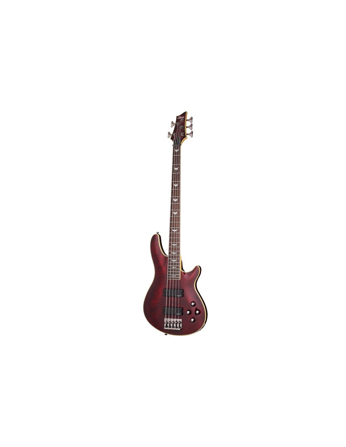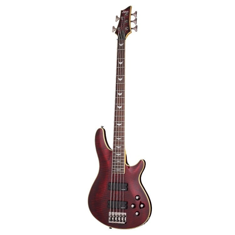 OMEN EXTREME-5-BCH - Basse Électrique 5 cordes - Structure : Bolt-on - Corps : Acajou - Table : Érable Flammé - Manche : Érable - Touche : Palissandre - Échelle : 35" - 24 frettes X-jumbo - Rayon : 16" - Incrustations : "Vector" - Binding : Multistrat - Micros : Schecter Diamond Active - Contrôles : 1x Blend + 1x Volume + Égaliseur actif 2 bandes - Chevalet : Diamond Bass - Mécaniques : Schecter - Finition Hardware : Noir Chromé - Sillet : Graph Tech XL Black Tusq - Couleur : Cerise Noire - Finition : Brillante.