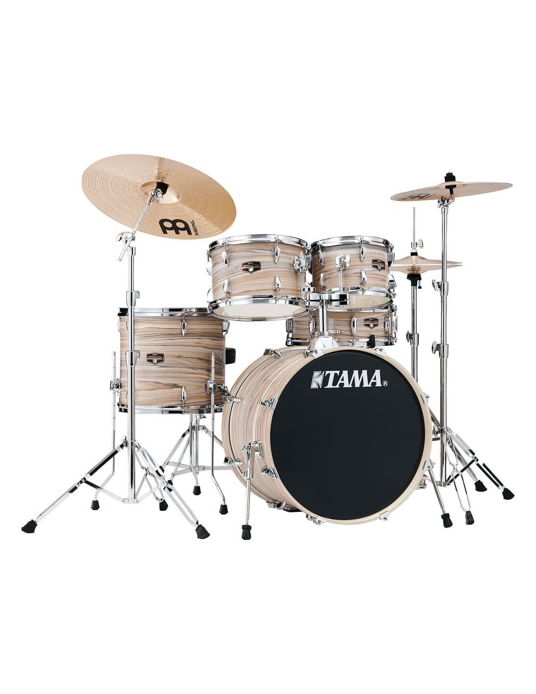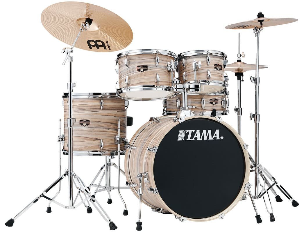 batterie acoustique Tama IE50H6W - NZV Imperialstar, couleur et finition en placage de bois zèbre naturel. La batterie acoustique Tama IE50H6W - NZV Imperialstar est une batterie construite en peuplier à 8 couches avec une épaisseur de 7,5 mm, elle est équipée d'un matériel chromé, issue de la série Imperialstar.