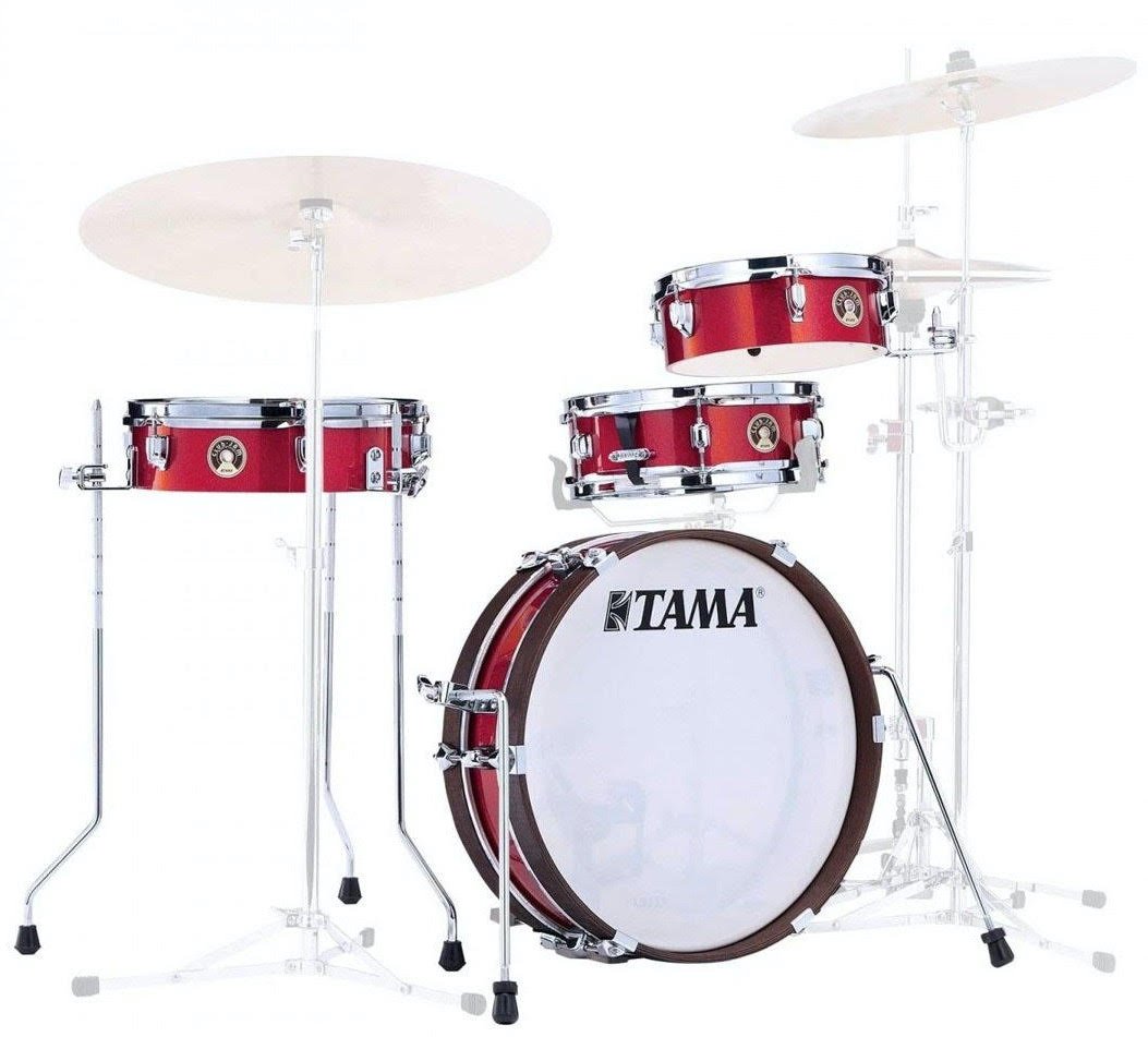 TAMA LJK48P-BRM est un ensemble de batterie compact et léger, parfait pour les batteurs à la recherche d'un instrument facile à transporter et à monter. Il est idéal pour jouer dans de petits lieux, des salles de répétition et pour les batteurs qui ont peu d'espace disponible. Les fûts, cymbales et peu profonds, sont fabriqués en peuplier et montent des peaux Remo Ambassador.