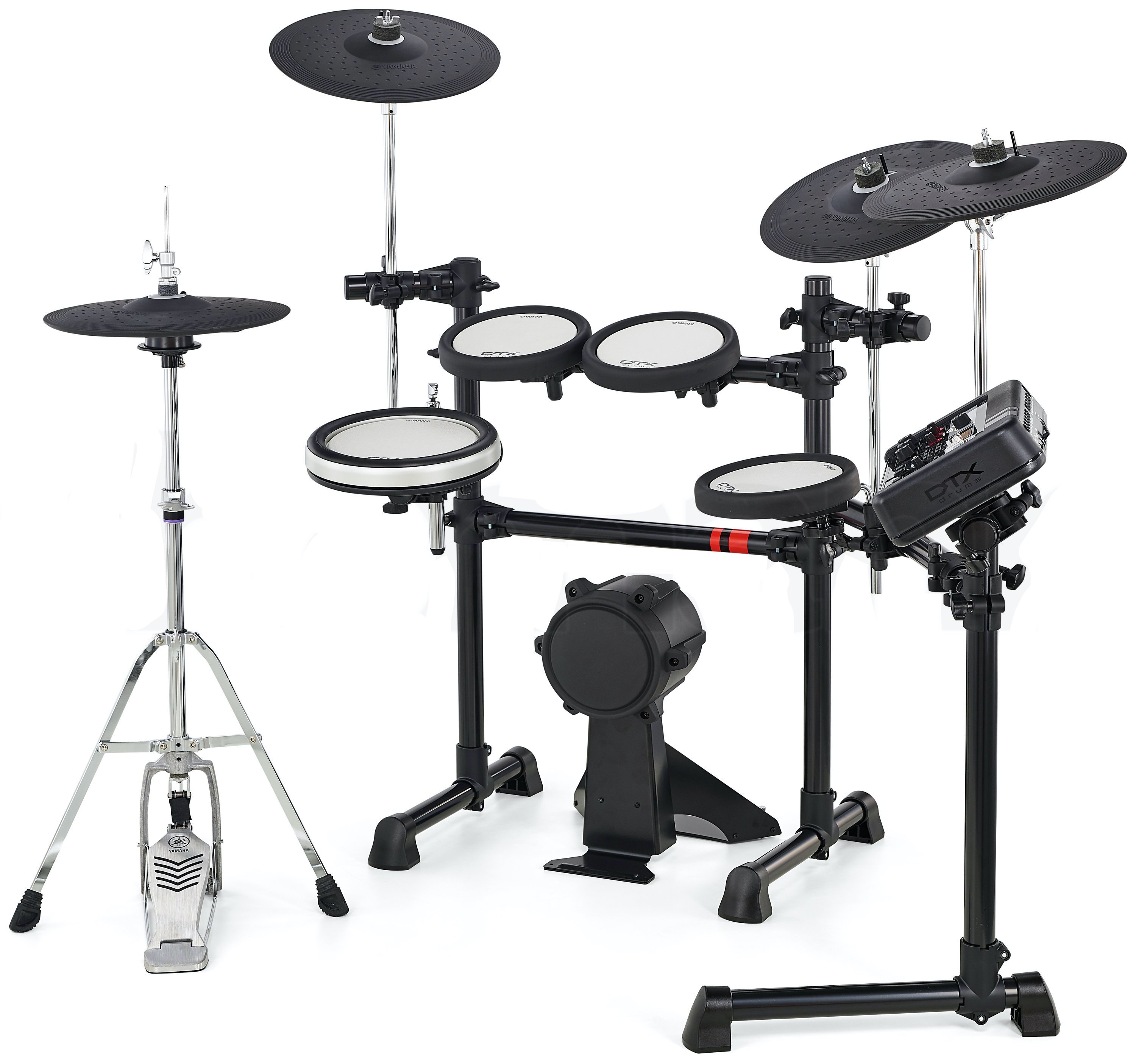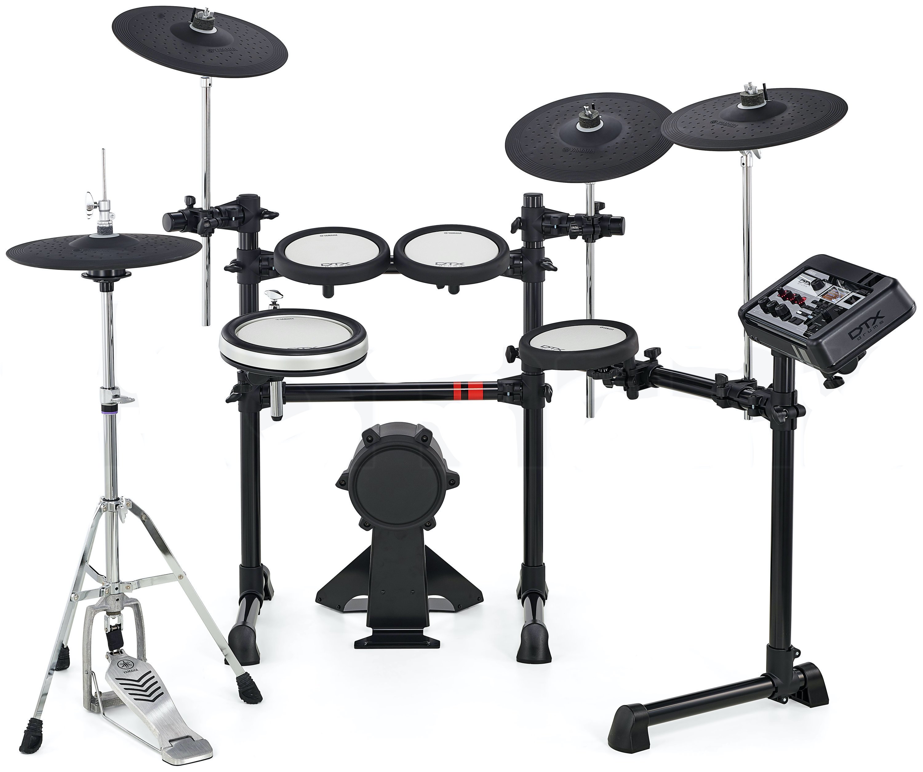 YAMAHA DTX6K3-X. Le kit Yamaha DTX6K3-X est une batterie électronique composée d'un module DTX-PRO avec 40 kits de batterie préprogrammés, 3 triggers de cymbale, 3 triggers de tom, 1 trigger de grosse caisse et une caisse claire en silicone à double couche. Il dispose également d'une sortie USB audio/MIDI, d'un Bluetooth intégré pour la connexion sans fil et d'un large éventail de fonctions d'entraînement telles que le mode d'entraînement, le contrôle de groove et le rythme gate.