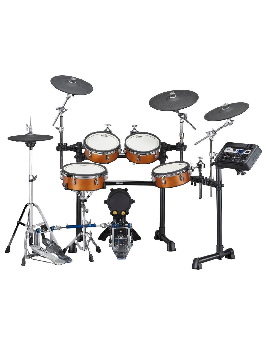 YAMAHA DTX8K X RW REAL WOOD KIT est une batterie électronique avec des fûts en bois de bouleau, avec plus de 700 sons, 40 presets de kits de batterie et 30 FX. Les caractéristiques techniques incluent : Module DTX-PRO qui offre des sons de batterie réalistes personnalisables et modifiables, Pad Mesh à double zone sur tom et caisse claire pour un ressenti réaliste et une large réponse dynamique, Hi-hat VH-14D qui simule fidèlement les sensations d'un hi-hat acoustique, cymbales Crash et Ride à zones multiples, fonction d'apprentissage avec exercices et défis avec métronome et morceaux d'accompagnement, possibilité d'enregistrement et de reproduction audio, connectivité Bluetooth et USB.