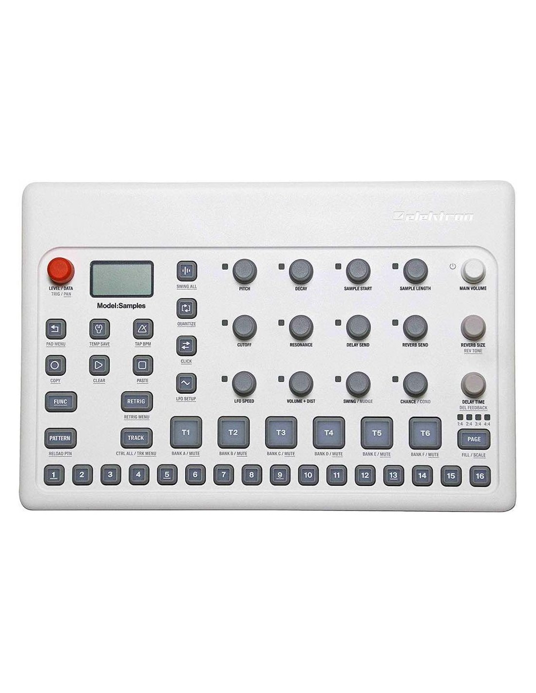 ELEKTRON MODÈLE : ÉCHANTILLONS. Boîte à rythmes et échantillonneur de sons à 6 pistes avec 300 presets de sons réalisés par Splice. Les caractéristiques techniques incluent la fonction Contrôle Tout pour la modification des échantillons et Reload pour les restaurer, la fonction Verrouillage des Paramètres pour l'automatisation des paramètres, la possibilité de charger 6 échantillons à la fois et de créer des kits d'échantillons, Longueur de Pas indépendante pour chaque piste, Multiplicateur de Tempo indépendant pour chaque piste. Alimenté via USB audio 2.0 conforme à la classe.