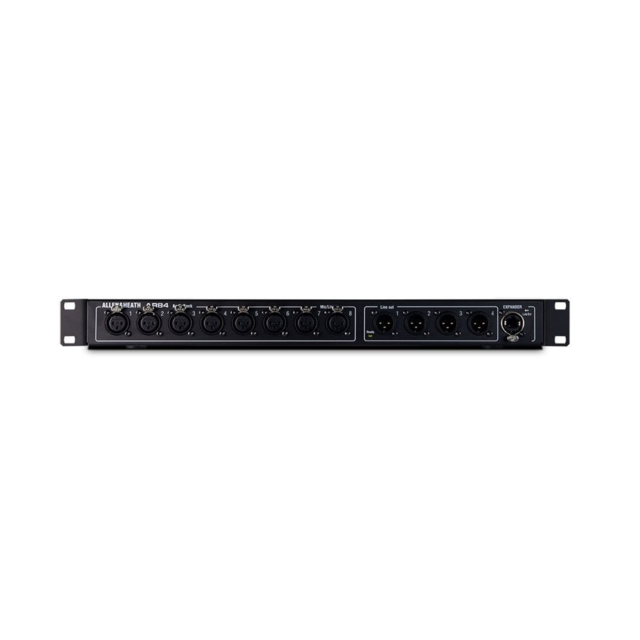 Rack audio (8 XLR IN, 4 XLR OUT) Possibilité de connecter 2 pièces à 1 expandeur Mod. AR2412 (24 XLR IN, 12 XLR OUT) avec CAT5 jusqu'à 120 m. jusqu'à 120 m. avec CAT5 en utilisant le protocole dSNAKE de l'A&H. Le dSNAKE fournit le contrôle aux préamplis distants, et tous les préamplis micro sont des scènes rappelables.