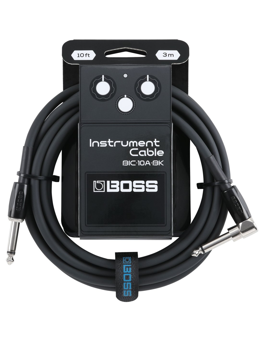 BOSS BIC-10A-BK est un câble audio pour instruments professionnel de 3m, avec des connecteurs jack droit et angulé de 6,3mm, conducteur en cuivre sans oxygène pour une transmission du signal cristalline, robuste blindage tressé pour un fonctionnement silencieux et durable. Inclut une pratique attache-câble avec le logo BOSS.
