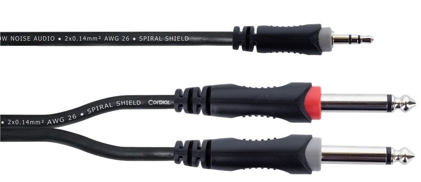 CORDIAL ELEMENTS EY1.5WPP est un câble stéréo en Y de la ligne CORDIAL ELEMENTS, avec un câble AWG 26 doté d'un blindage en spirale et de connecteurs Jack 3,5mm TRS/2xJack 6,3mm TS mono