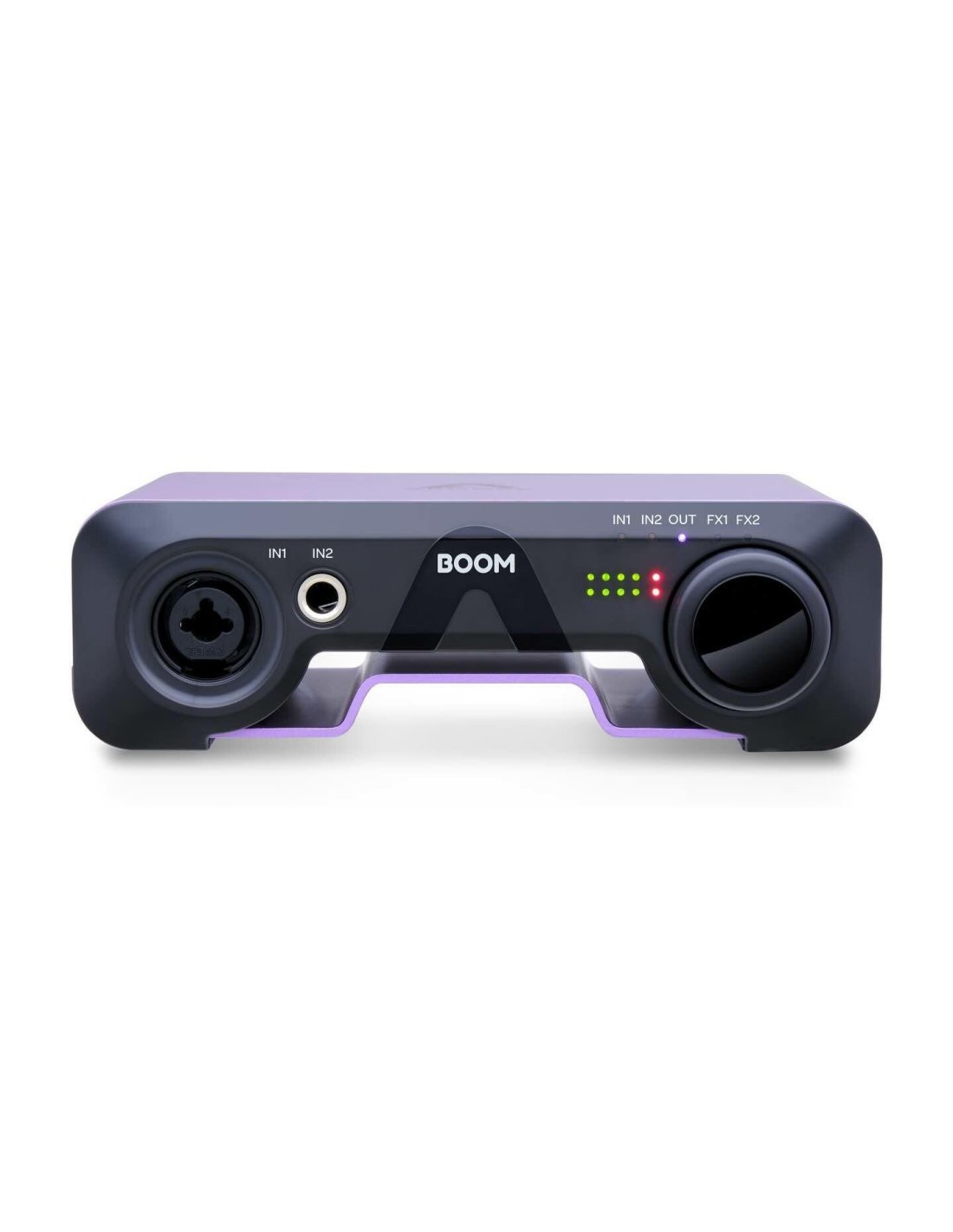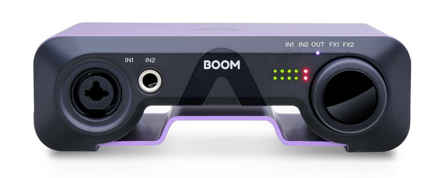 Apogee BOOM est une interface audio USB-C 24 bits/192 kHz ultra portable à 2 canaux avec DSP intégré, idéale pour les créateurs de contenu, les blogueurs et les musiciens.