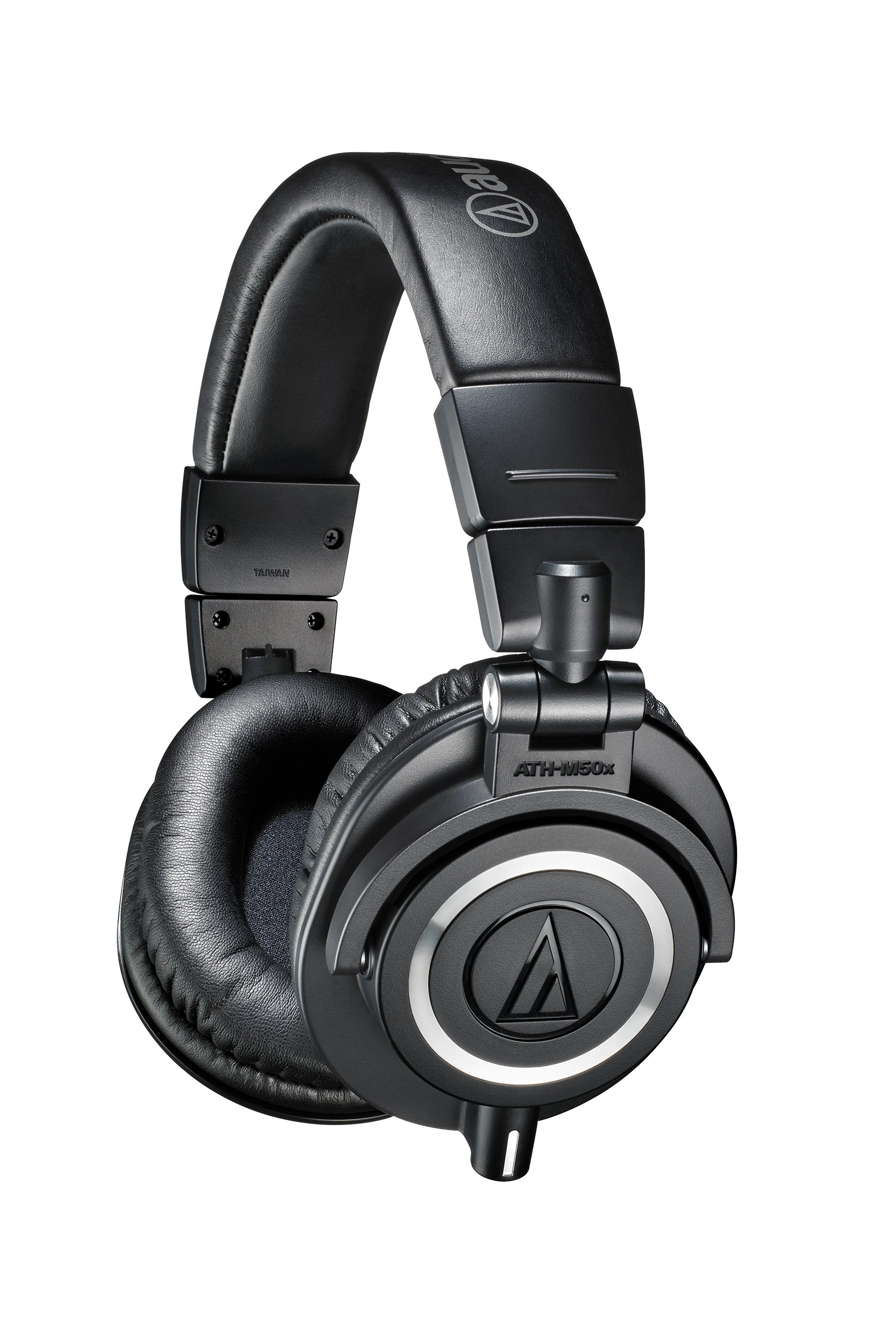 AUDIO TECHNICA ATH-M50X. Casque fermé Over-Ear professionnel de studio avec des oreillettes pliables, des drivers en néodyme de 45 mm et une bobine CCAW recouverte de cuivre, réponse en fréquence de 15 Hz - 28 kHz, câble amovible avec sortie sur l'oreillette droite. Inclus câble 1,2m-3m spiralé, câble 3m droit stéréo avec connecteur plaqué or 1/8" (3,5mm), étui souple et adaptateur jack 6,3mm.