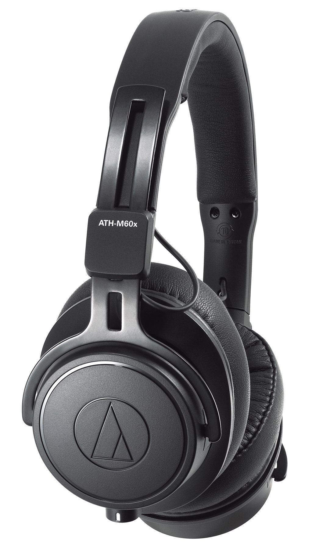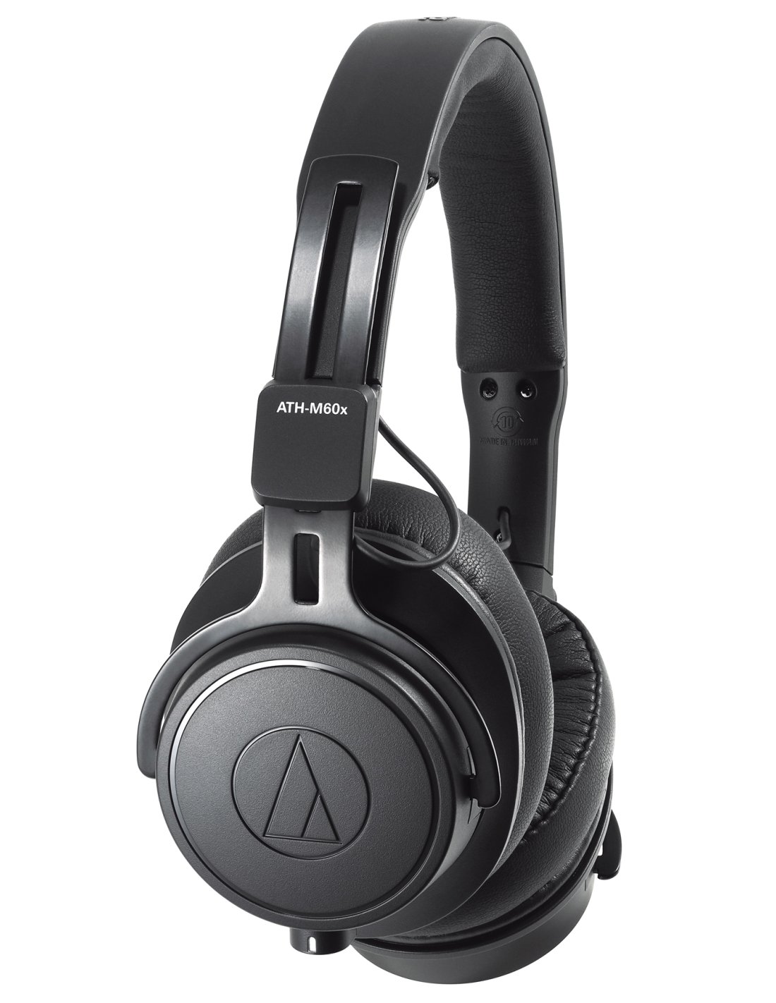 AUDIO TECHNICA ATH-M60X. Casque fermé Over-Ear professionnel de studio avec des oreillettes pliables, des drivers en néodyme de 45 mm et une bobine CCAW recouverte de cuivre, réponse en fréquence de 15 Hz - 28 kHz, câble amovible avec sortie sur l'oreillette droite. Inclus câble 1,2 m-3 m spiralé, câble 3 m droit stéréo avec connecteur plaqué or 1/8" (3,5 mm), étui souple et adaptateur jack 6,3 mm.