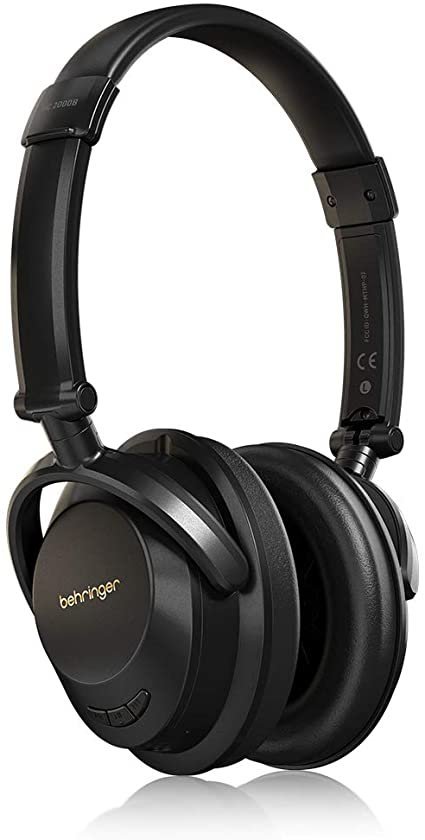 BEHRINGER HC2000B. Casque fermé Bluetooth de studio. Les caractéristiques techniques incluent des drivers dynamiques de 40 mm, technologie de connexion Bluetooth, arceau réglable, coussinets rembourrés et pliables, batterie lithium avec une capacité allant jusqu'à 14 heures de lecture, microphone intégré. Inclut un câble de recharge USB.