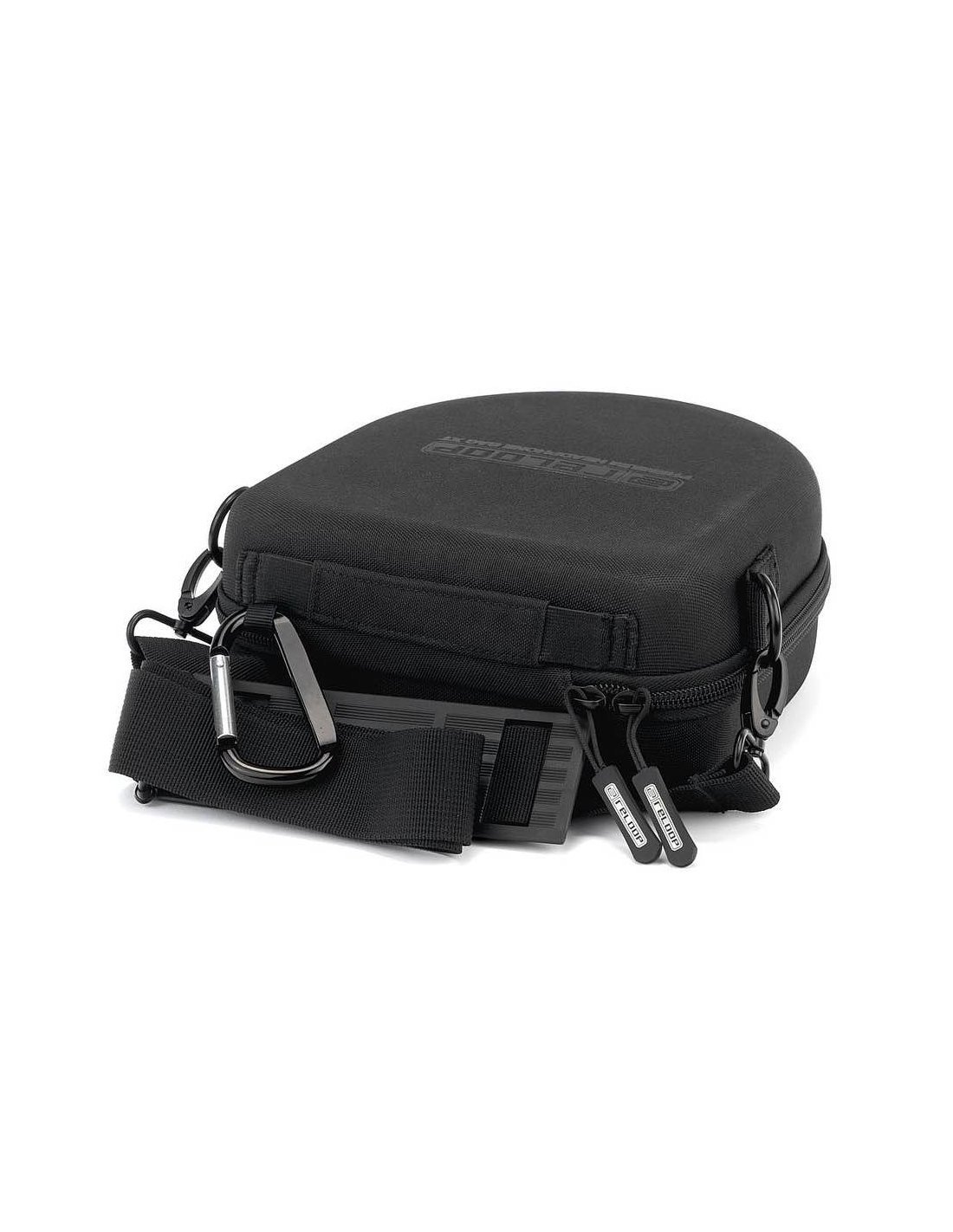 Étui rigide avec une coque extérieure en polyester résistant et mousse moulée EVA Durashock, idéal pour le transport des écouteurs, complet avec une poche intérieure pour objets, une poignée et une bandoulière pour le transport et un mousqueton pour l'attacher aux bagages. Dimensions mm 200 x 220 x 90, poids gr 378.