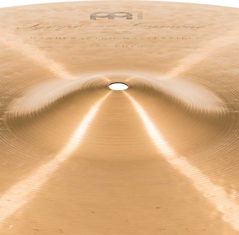 'Symponic 22'' Thin. Série Symphonic. Les cymbales de la série Symphonic sont fabriquées artisanalement dans notre usine en Turquie par des spécialistes et en respectant la tradition tout au long du processus. Toutes les cymbales sont réalisées avec des disques en alliage de bronze B20. Plusieurs techniques sont impliquées dans le processus, tant le martelage que le tournage. La finition Dark unturned donne à chaque cymbale un son défini avec peu de sustain. Vraiment agréable dans le mix.