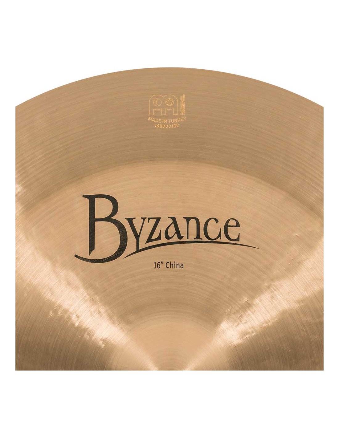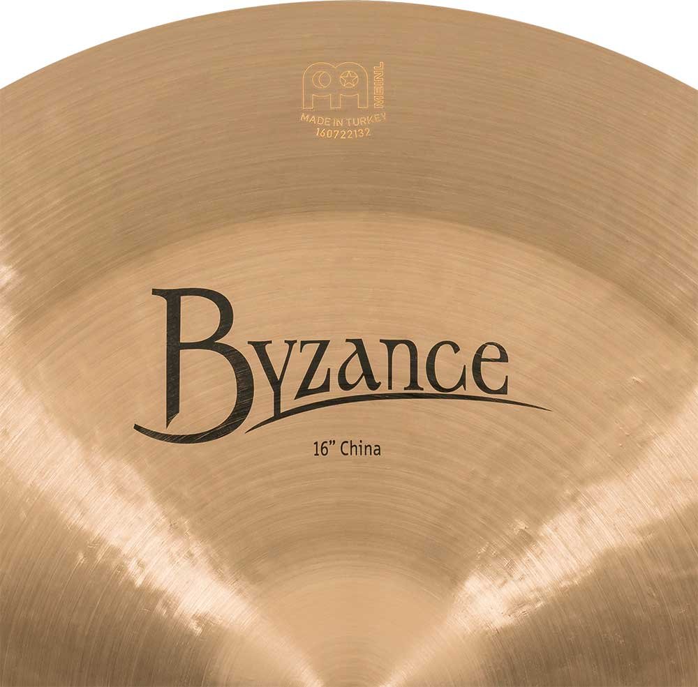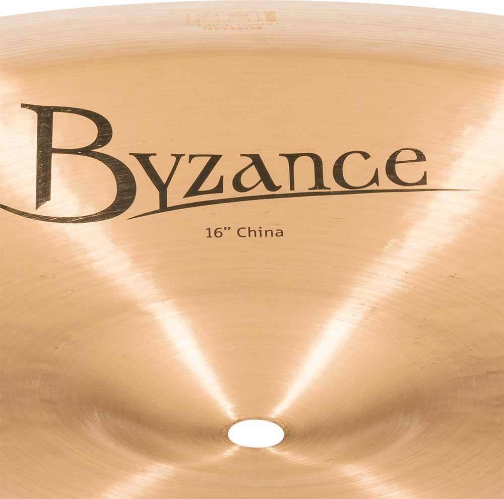'Chine 16'', Série Byzance Traditionnelle. Les cymbales de la série Byzance Traditionnelle sont fabriquées artisanalement dans notre usine en Turquie par des spécialistes et en respectant la tradition tout au long du processus. Toutes les cymbales sont réalisées avec des disques en alliage de bronze B20. Plusieurs techniques sont impliquées dans le processus, tant le martelage que le tournage. La finition traditionnelle donne à la série le son classique de la cymbale turque que nous entendons depuis plus d'un siècle.