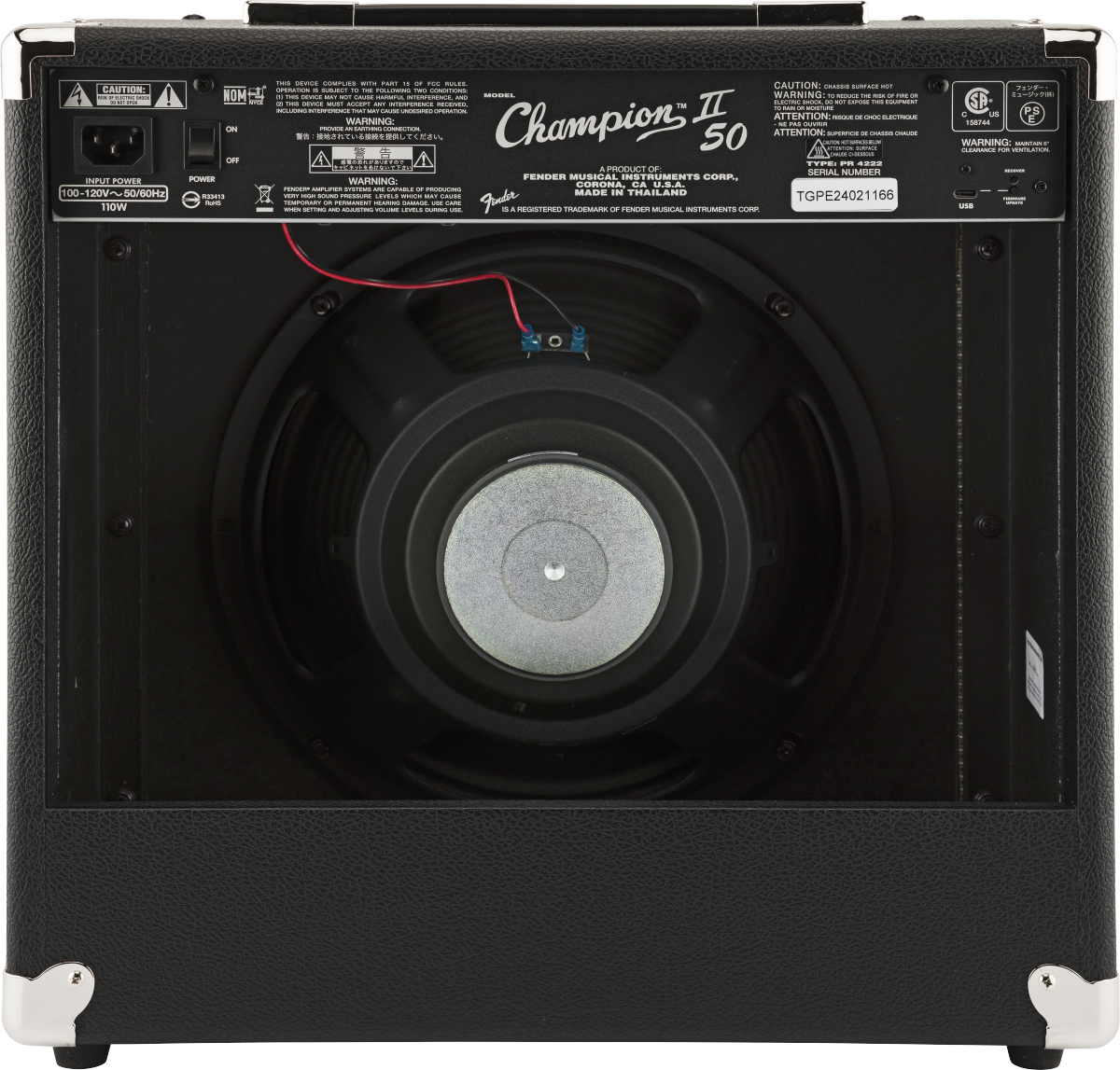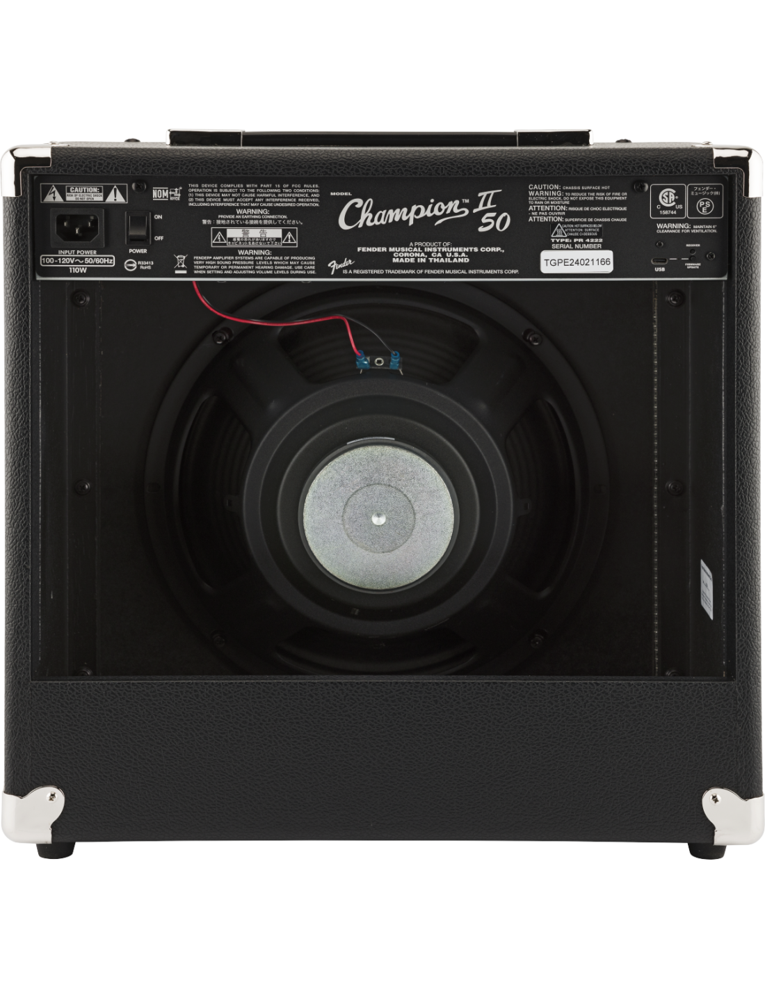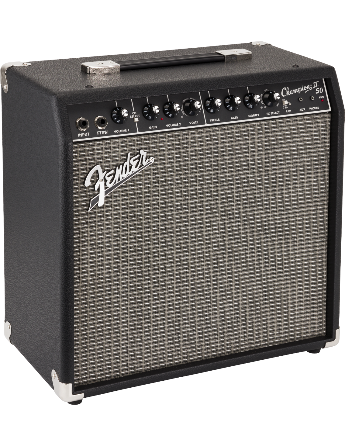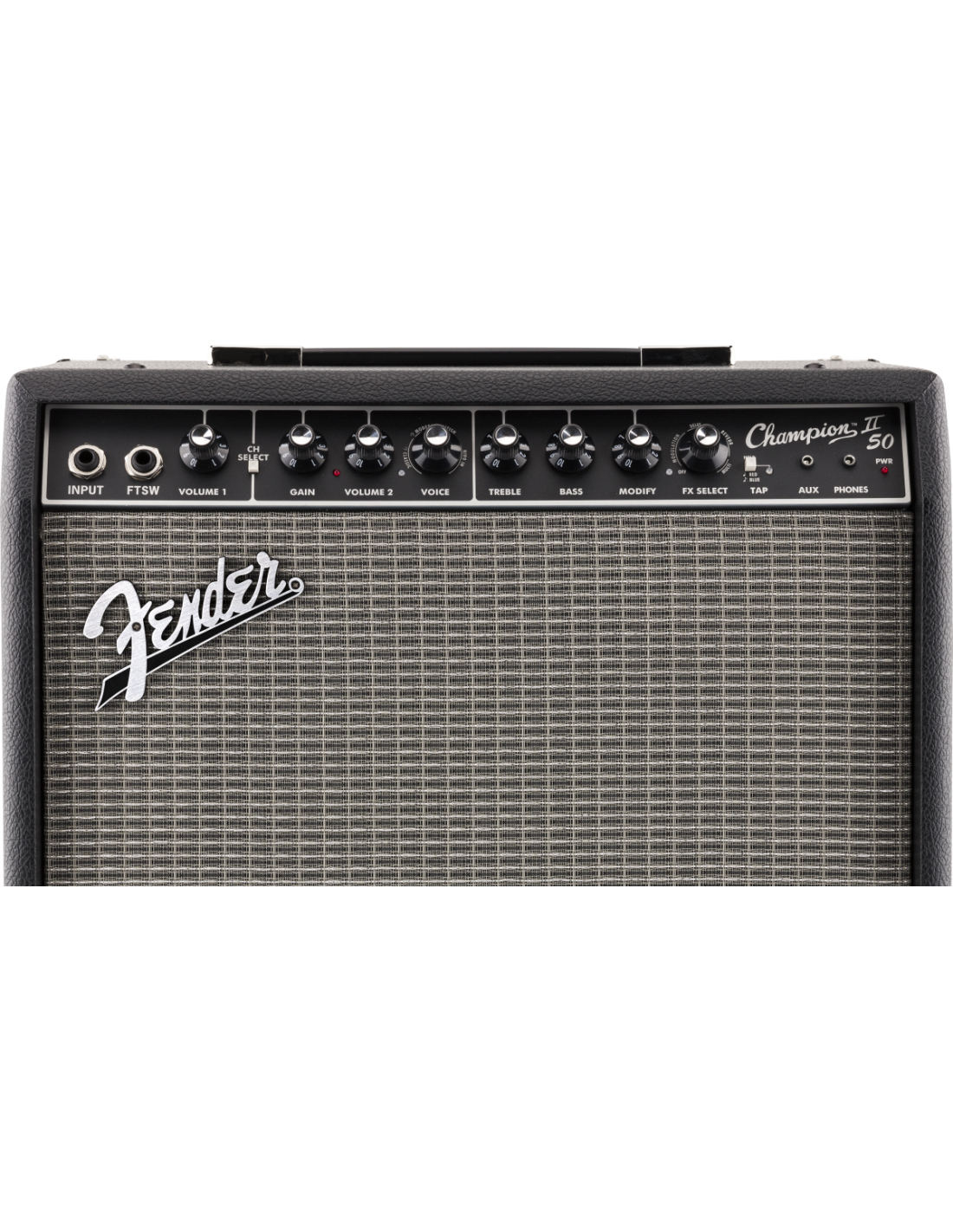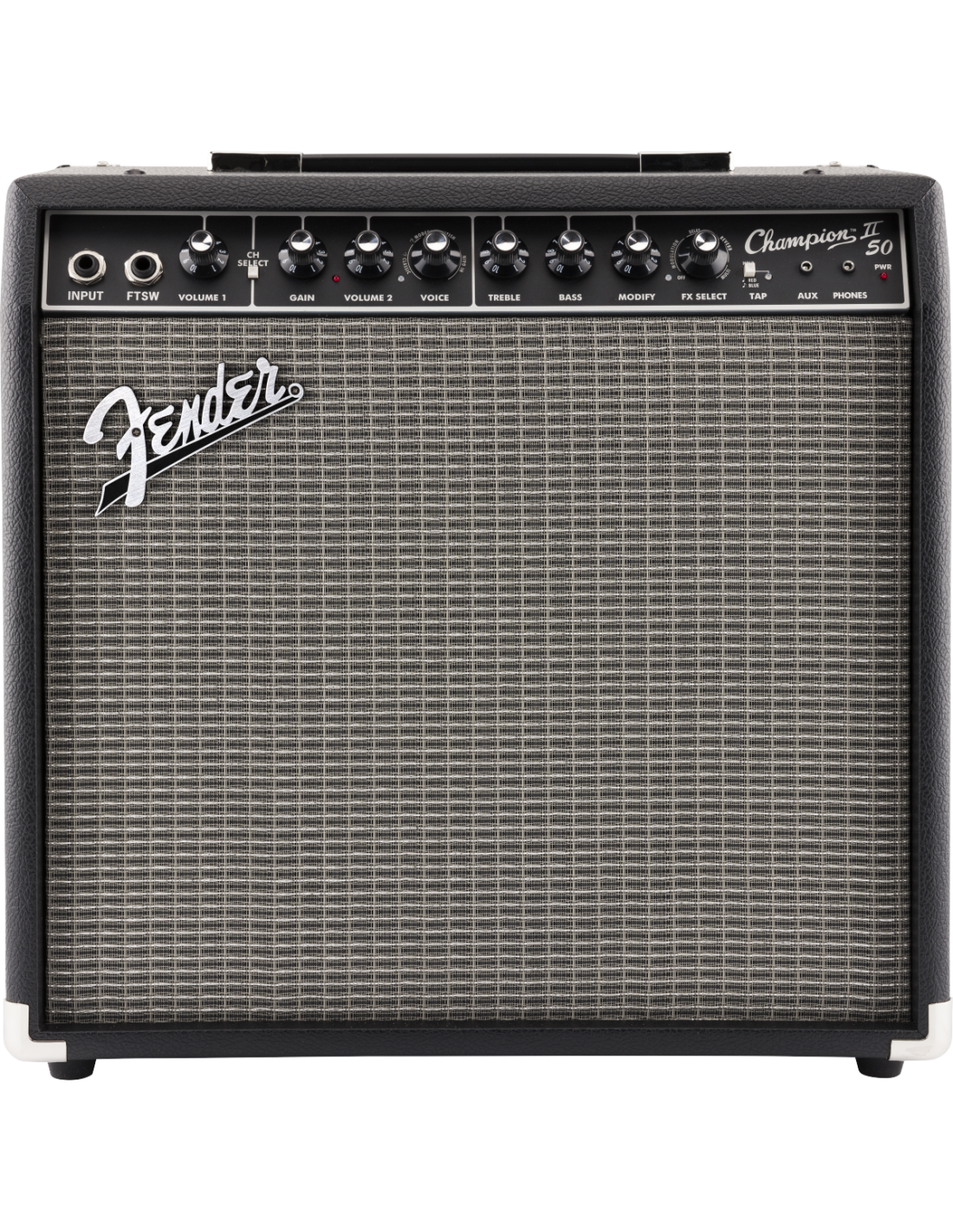 FENDER CHAMPION 50 II est un amplificateur combo numérique 1X12" pour guitare à 2 canaux, avec effets numériques intégrés et 50W de puissance à 8 Ohm. Les caractéristiques techniques incluent un haut-parleur de 12" Fender Special Design, 2 canaux sélectionnables via un bouton dédié ou un Footswitch : le canal 1 comprend le contrôle du Volume, le canal 2 inclut les commandes Gain, Volume, Eq à 2 bandes Aigus/Bas, le contrôle Voice qui permet la sélection de 4 amplificateurs différents, Niveau FX, Sélection FX et TAP tempo. Il présente également une sélection d'effets intégrés, y compris réverbération, delay/écho, chorus, trémolo, Vibratone et d'autres, entrée aux et écouteurs via jack 3,5mm, port USB à l'arrière pour les mises à jour du Firmware, entrée Footswitch de 1/4". Inclut un Footswitch à 2 boutons