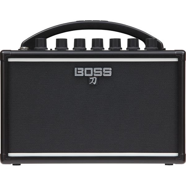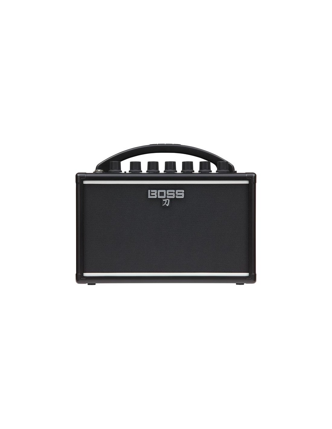 Amplificateur pour Guitare Électrique Boss Katana Mini. Le Boss Katana Mini est un amplificateur pour guitare électrique de 7 watts qui offre la possibilité de choisir entre 3 types d'amplificateurs (Brown, Crunch, Clean) et inclut un délai de style bande. Il est équipé des contrôles Gain, Type switch, Volume, Bass, Middle, Treble, Time, Level, Aux In, sortie Phones/Rec Out, 1 haut-parleur de 4”. Alimentation par piles AA ou avec adaptateur AC optionnel.