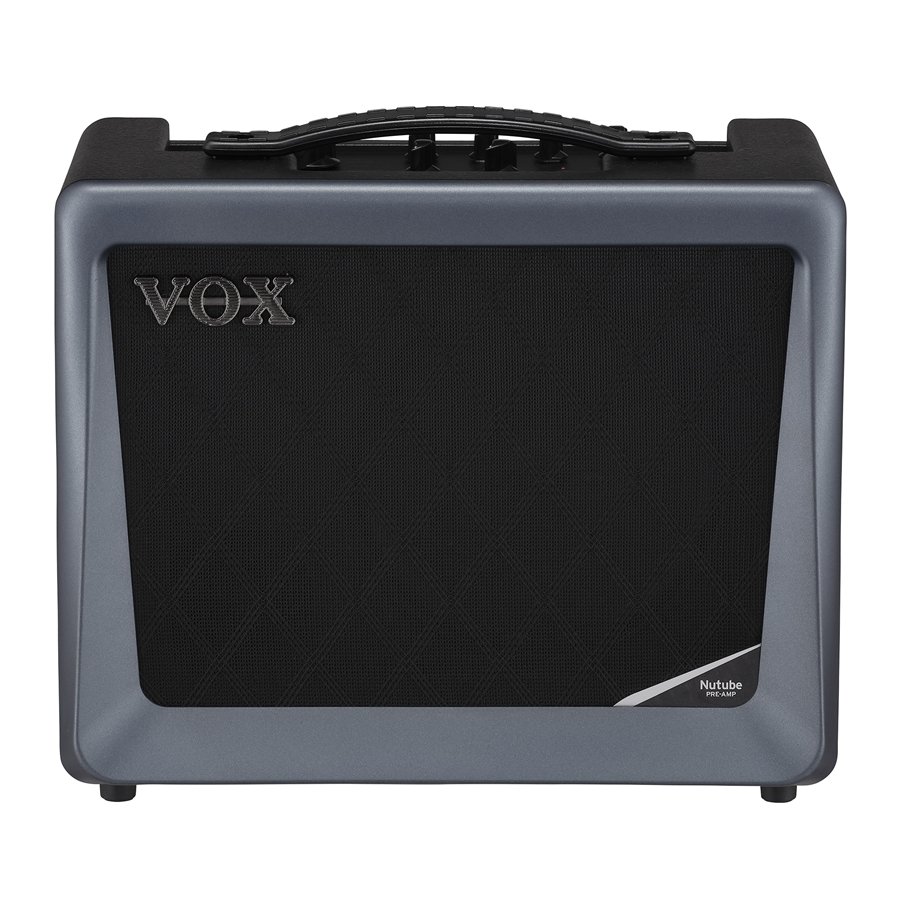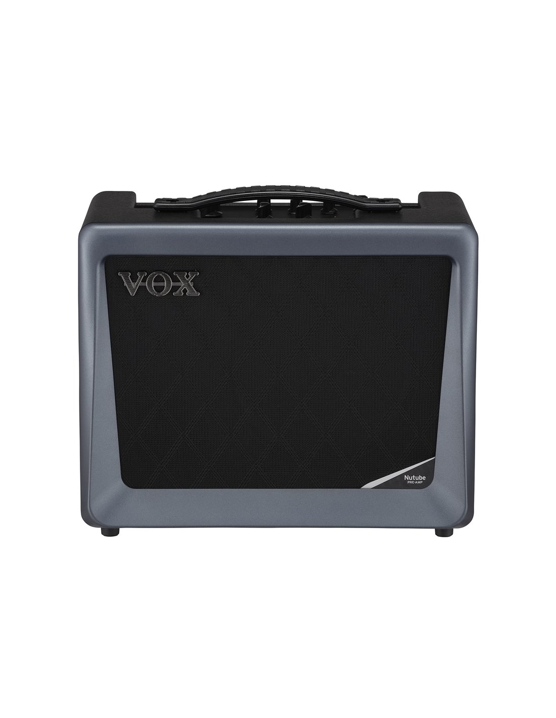 Amplificateur pour Guitare Électrique Vox VX50 GTV. Le Vox VX50 GTV est un amplificateur à modélisation physique pour guitare électrique de 50 watts qui utilise la technologie VET (Virtual Element Technology). Il est équipé de 11 modèles d'amplificateurs, 8 effets (chorus, flanger, phaser, tremolo, tape delay, analog delay, 2 réverbérations), 11 presets, 1 lampe Nutube 6P1, contrôles Gain, Treble, Bass, Volume, Power Level, accordeur, sortie casque, Aux In, 1 haut-parleur de 8”.