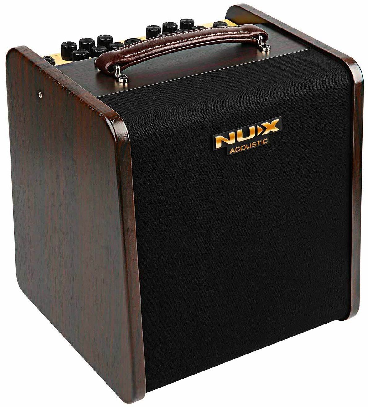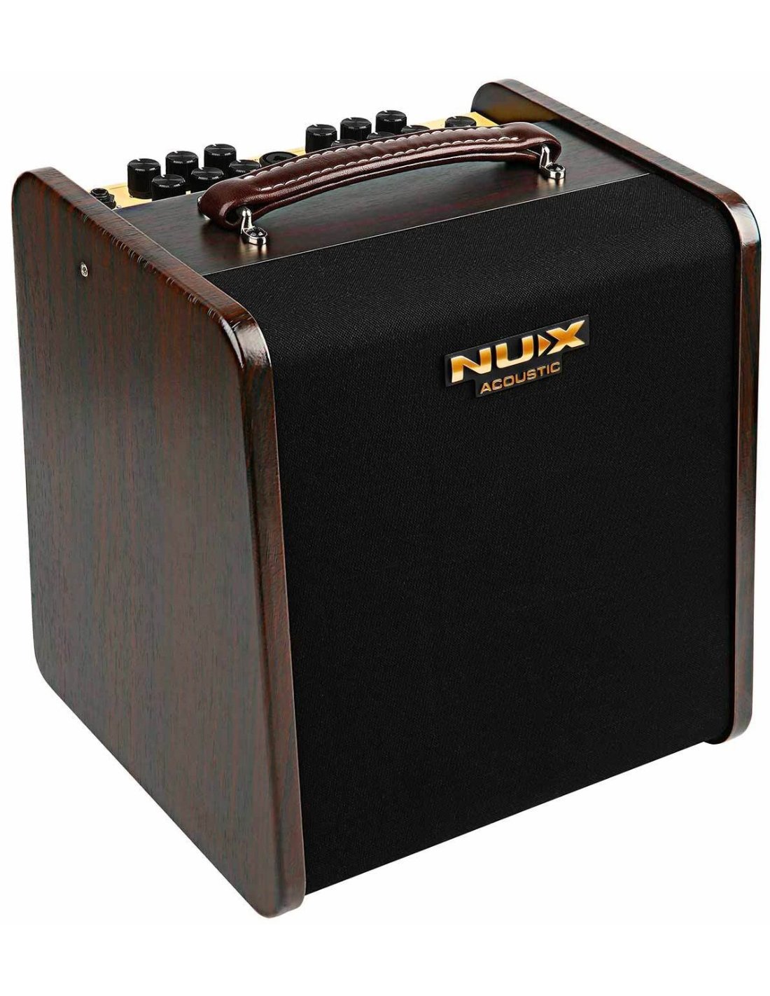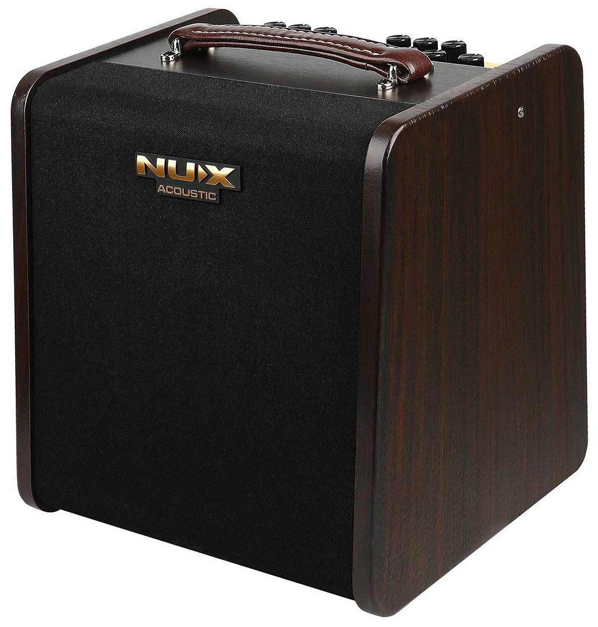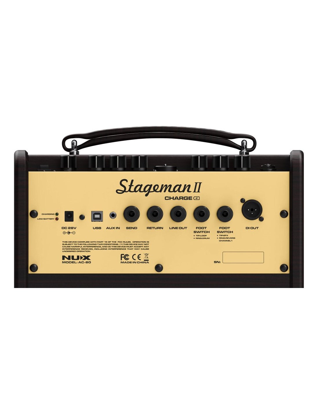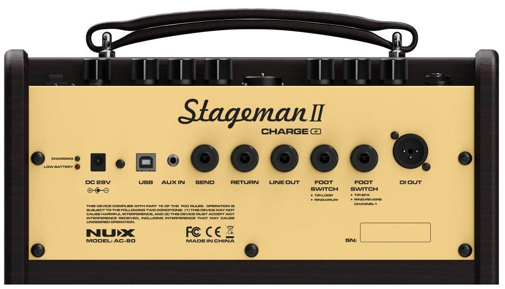 L'AC-80 Stageman II Charge est un amplificateur pour guitare acoustique et voix de Nux. Il est doté d'une puissance de 80W RMS avec un haut-parleur premium à 2 voies (6,5" woofer + 1" tweeter), d'une batterie lithium rechargeable qui garantit plus de 4 heures d'autonomie, 2 canaux indépendants pour instrument et voix, 8 IR et 12 effets, une boîte à rythmes et un looper.