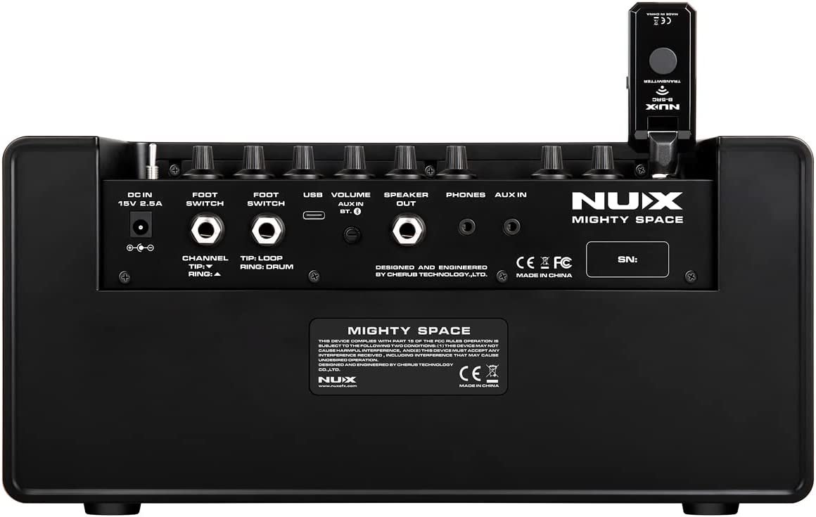 Le Mighty Space est un amplificateur de bureau sans fil pour guitare et basse de Nux. Il dispose d'une puissance de 30 W, de 2 haut-parleurs coaxiaux de 4", de la technologie de modélisation d'amplificateurs, de cabinets et d'effets, de 34 IR premium intégrés et de 20 emplacements pour charger des IR de tiers, de réverbération et de delay stéréo de haute qualité, ainsi que d'une fonction Drum & Loop qui peut être pilotée avec le pédalier NMP-2Lite inclus.